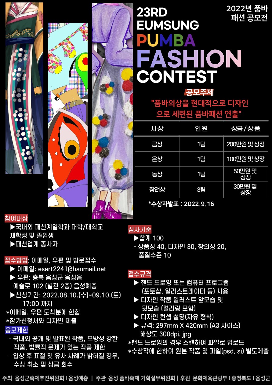 | 제목 | 제23회 음성품바축제 품바 패션 디자인 공모전 참가 안내 | ||||