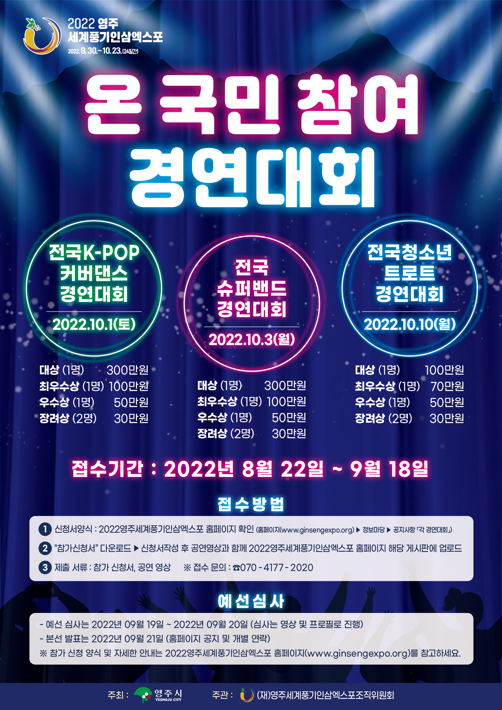 | 제목 | 2022 영주세계풍기인삼엑스포 온국민 경연대회 안내 | ||||