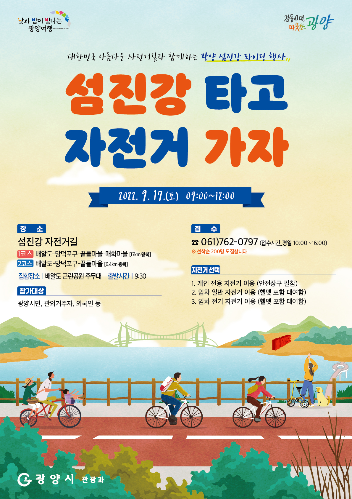 | 제목 | 2022 섬진강 라이딩「섬진강 타고 자전거 가자」행사 안내 | ||||