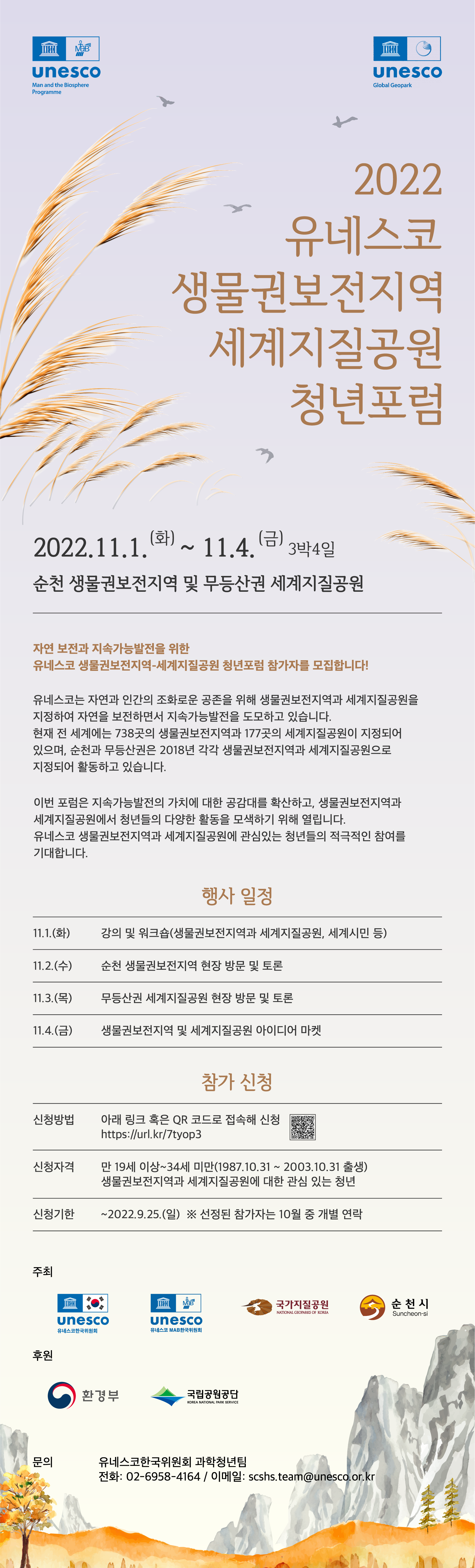 | 제목 | 2022 유네스코 생물권보전지역-세계지질공원 청년포럼 참가자 모집 안내 | ||||