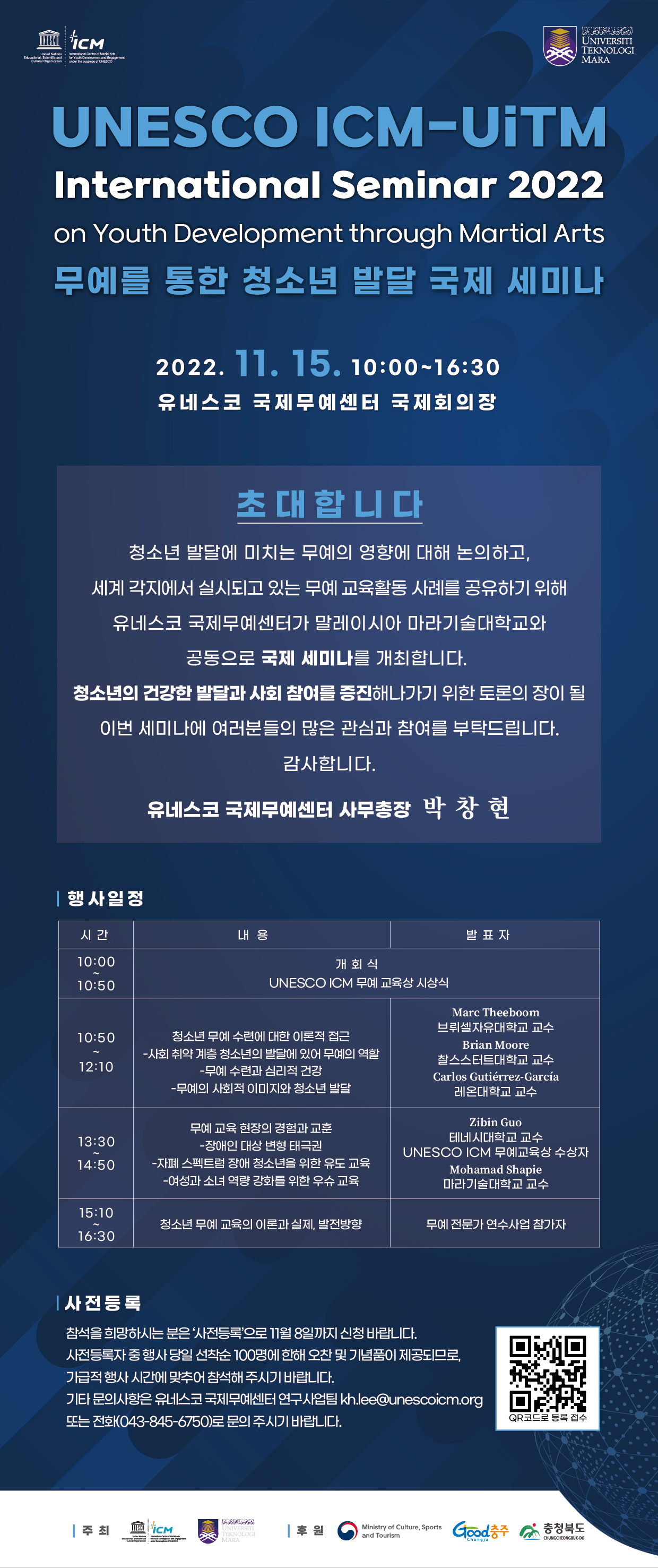 | 제목 | ICM-UiTM「무예를 통한 청소년 발달」국제 무예 세미나 개최 안내 | ||||
