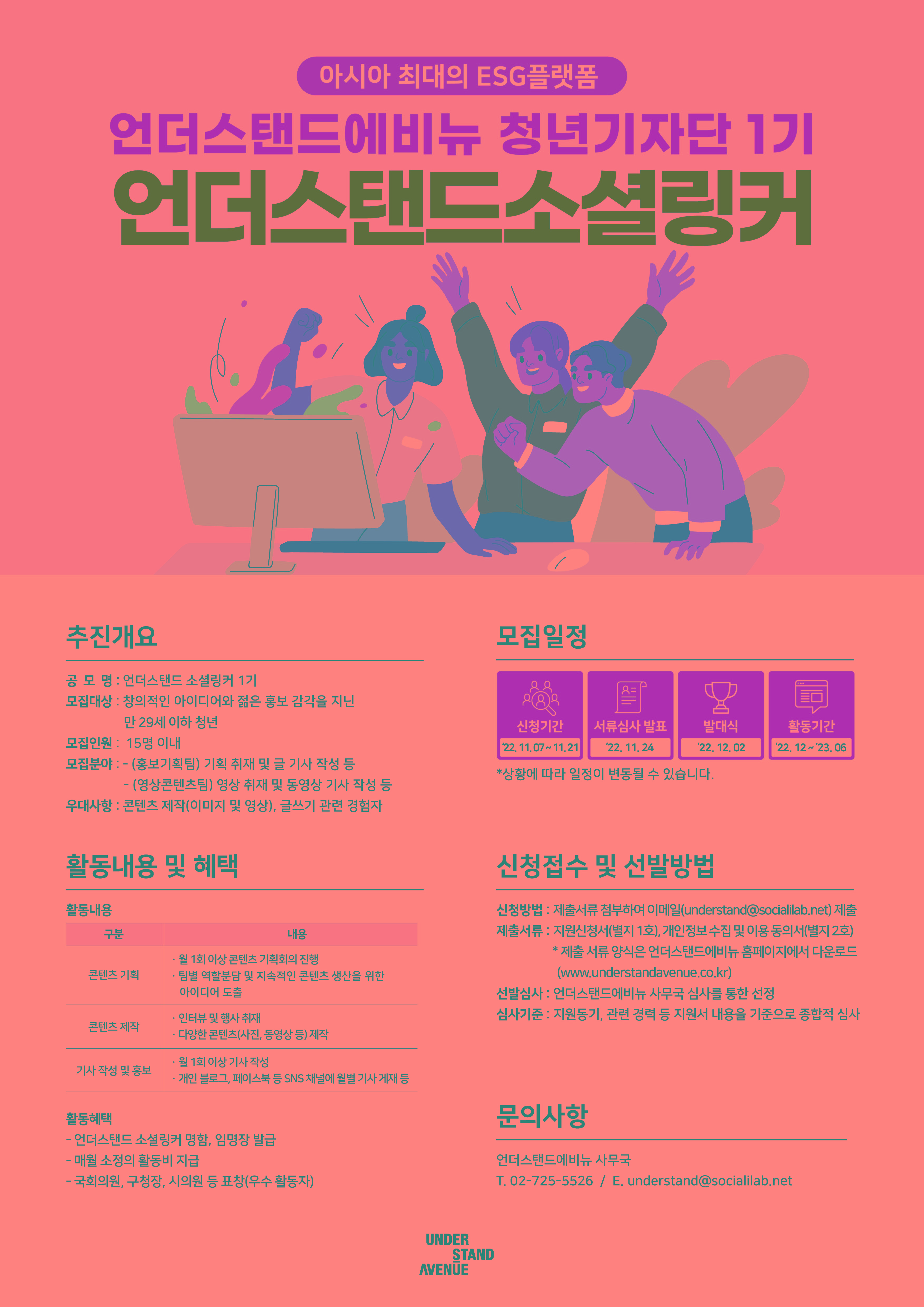 | 제목 | 언더스탠드에비뉴 청년기자단 [언더스탠드 소셜링커 1기] 모집 안내 | ||||