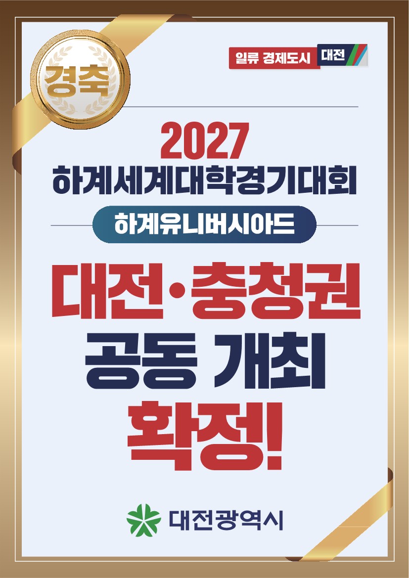 | 제목 | 2027 하계세계대학경기대회(구 하계유니버시아드대회) 대전·충청권 공동 개최 확정 | ||||