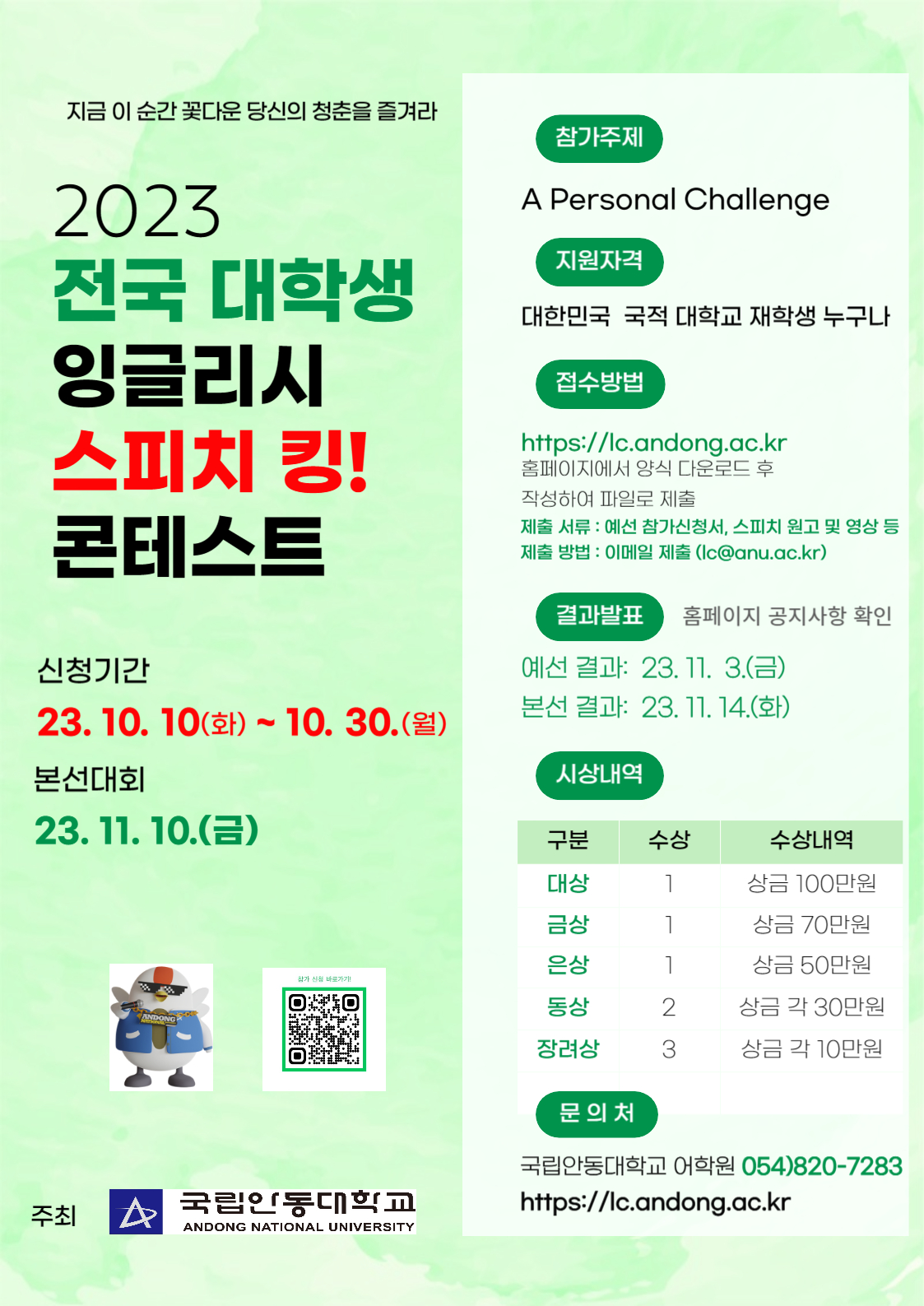 | 제목 | 제3회 전국 대학생 잉글리시 스피치 킹 콘테스트 안내 | ||||
