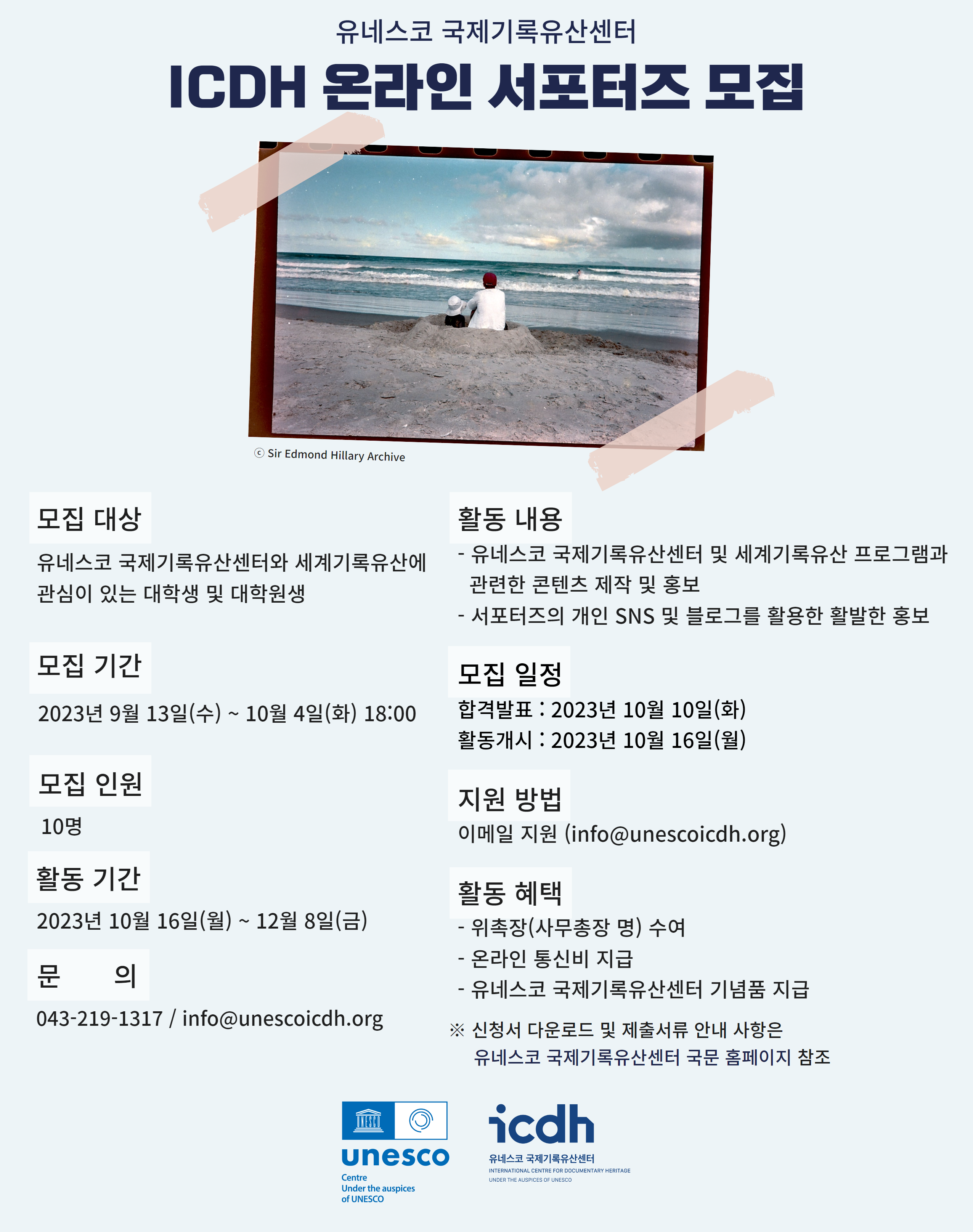 | 제목 | ICDH 온라인 서포터즈 모집 안내 | ||||