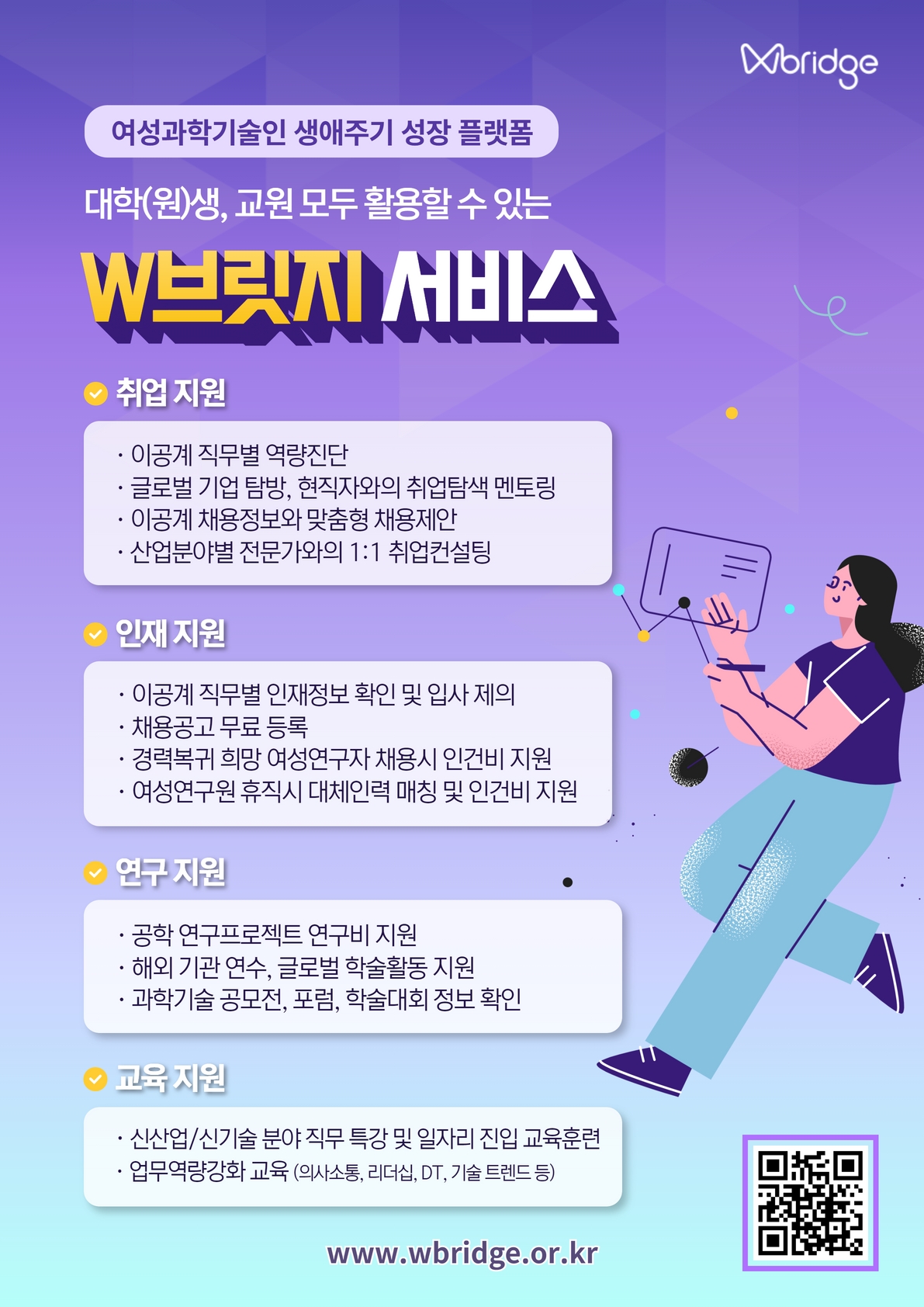 | 제목 | 여성과학기술인 생애주기 플랫폼 W브릿지 대학(교원, 학생) 서비스 안내 | ||||