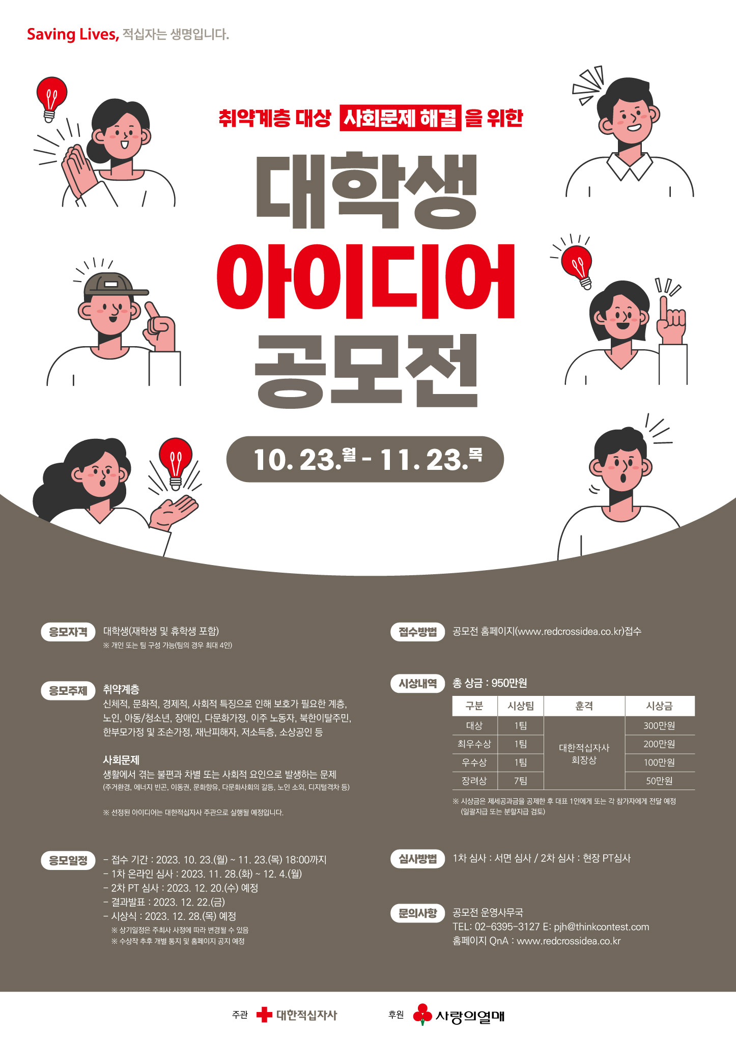 | 제목 | 취약계층 대상 사회문제 해결을 위한 대학생 아이디어 공모전 안내 | ||||