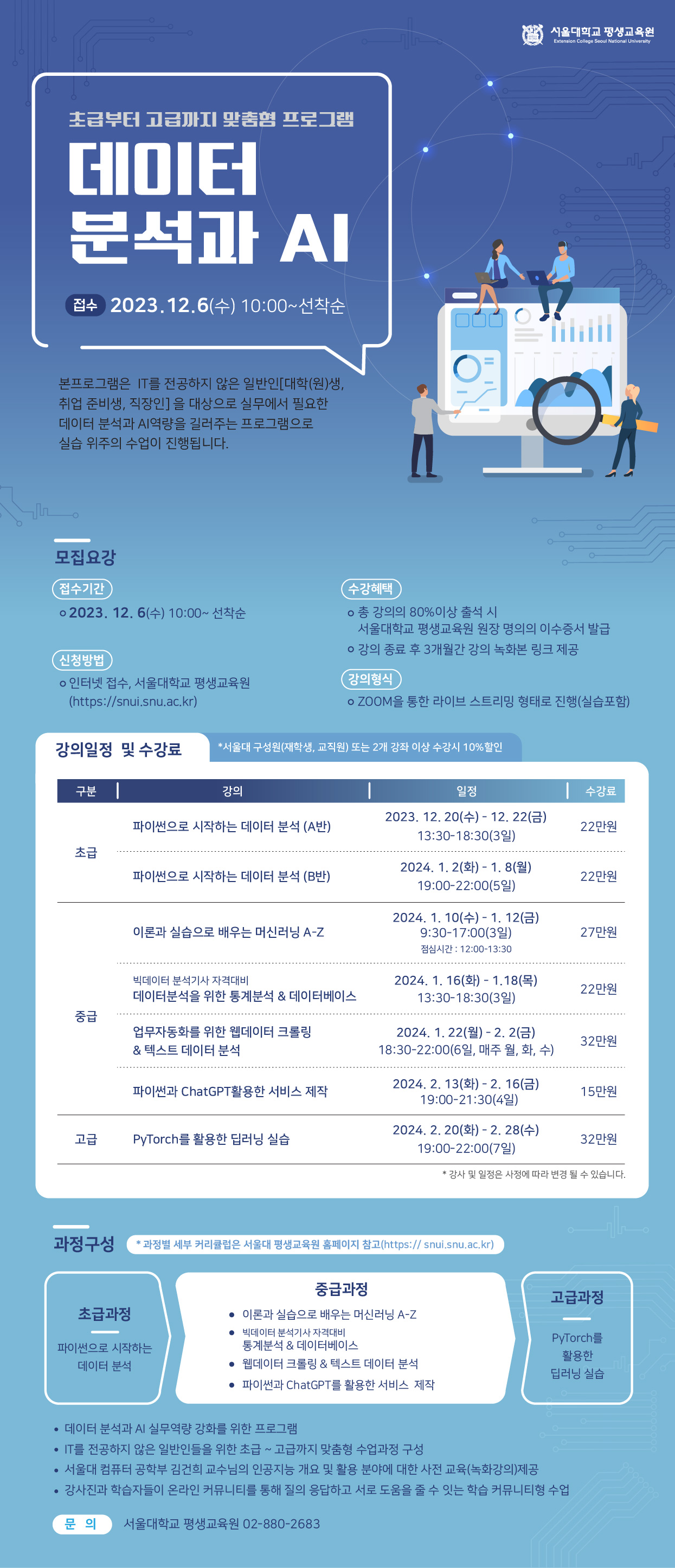 | 제목 | [서울대 평생교육원] 데이터 분석과 AI 과정 안내 | ||||