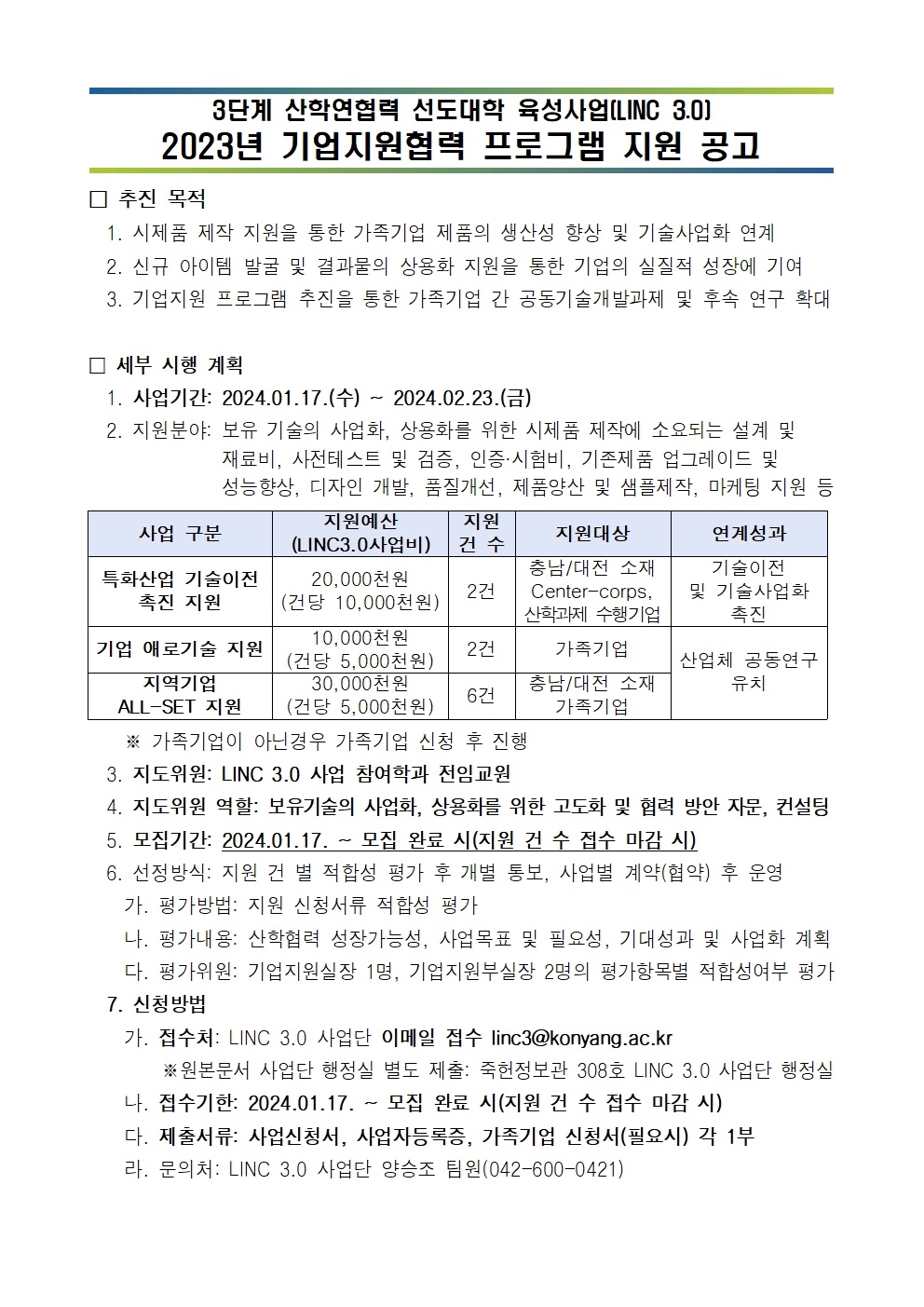 2023년 LINC3.0 기업지원협력 프로그램 공고문.hwp
