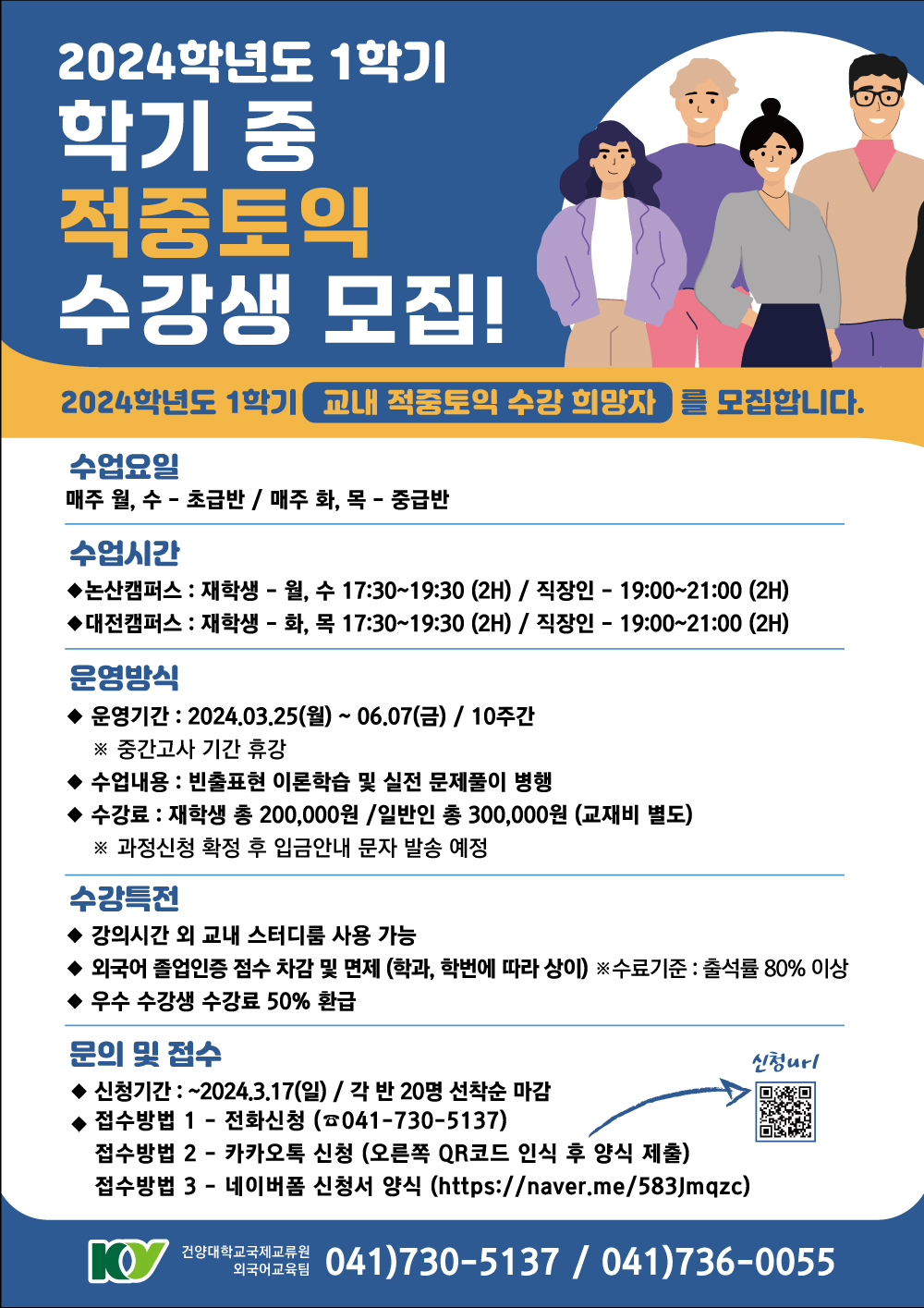 | 제목 | 2024학년도 1학기 적중토익 수강생 모집 | ||||