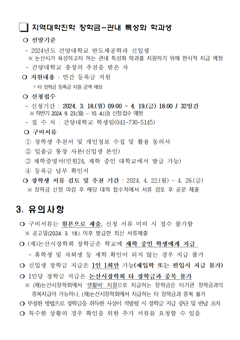 2024년도 재단법인 논산시장학회 장학생 선발 공고문(지역대학진학 발췌본).hwp