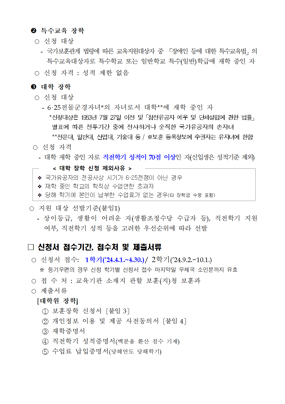 | 제목 | 2024학년도 1학기 보훈(가족)장학 신청안내 | ||||