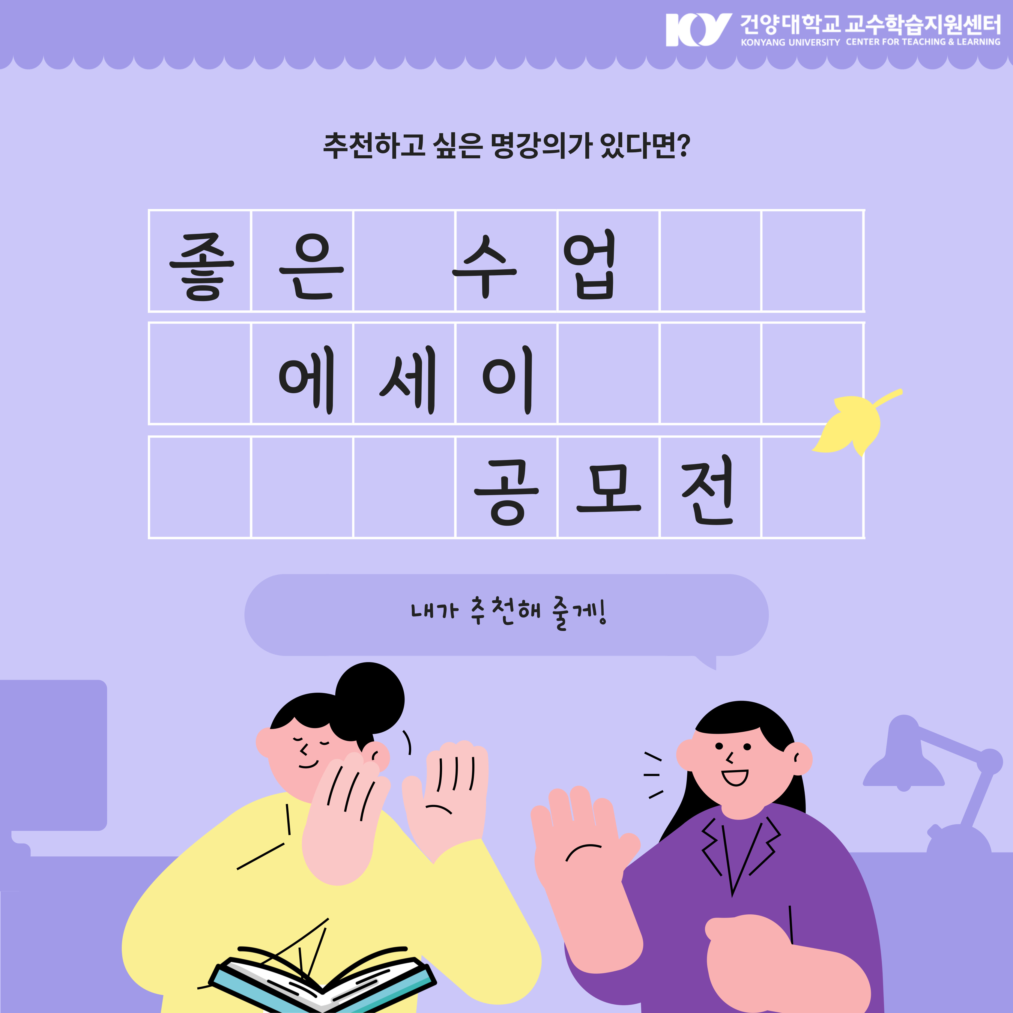 | 제목 | 2024학년도 좋은 수업 에세이 공모전 | ||||