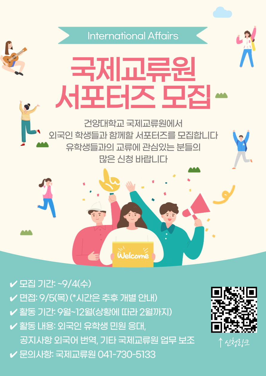| 제목 | 국제교류원 서포터즈 모집 | ||||