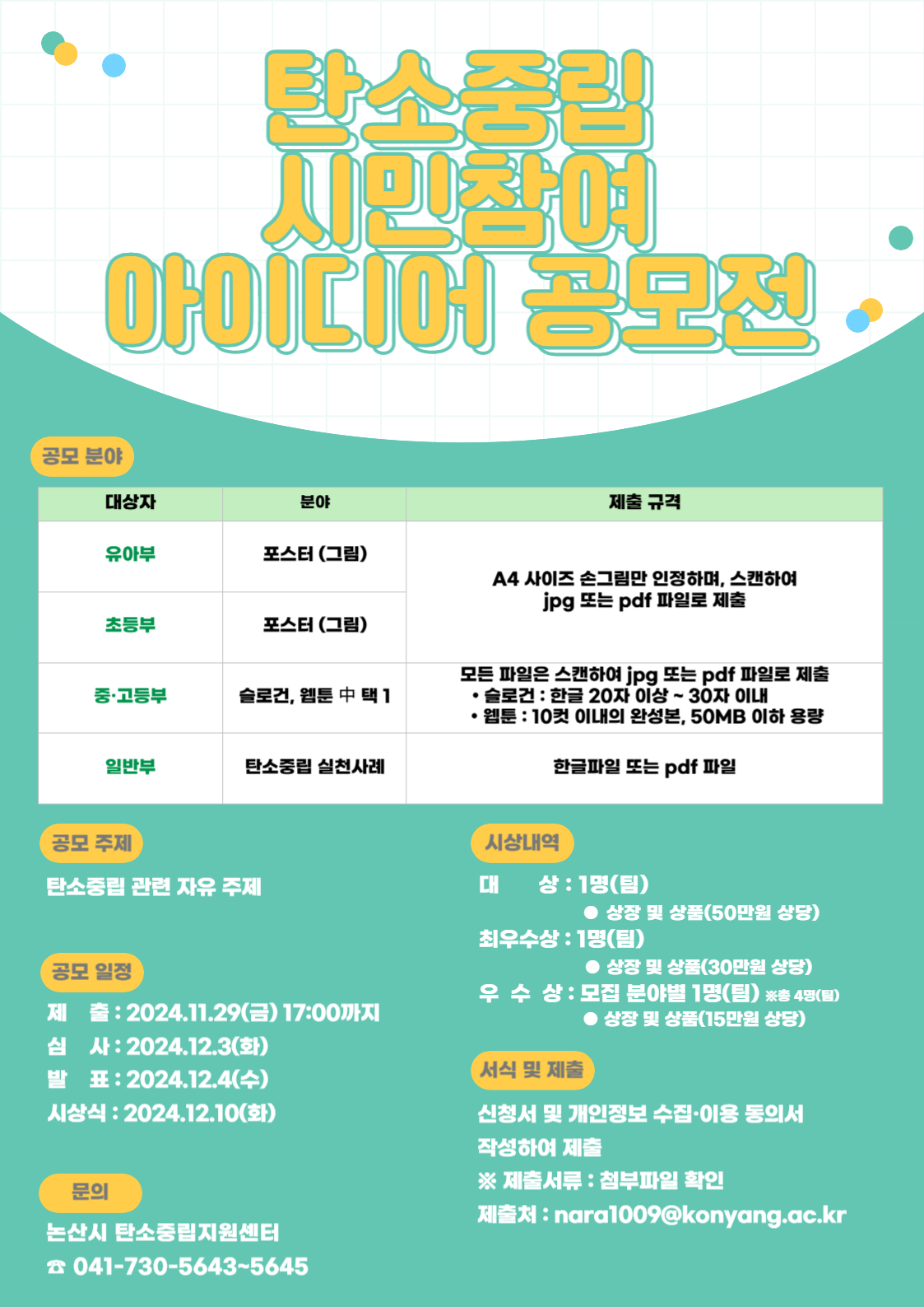 | 제목 | 탄소중립 시민참여 아이디어 공모전 안내 | ||||