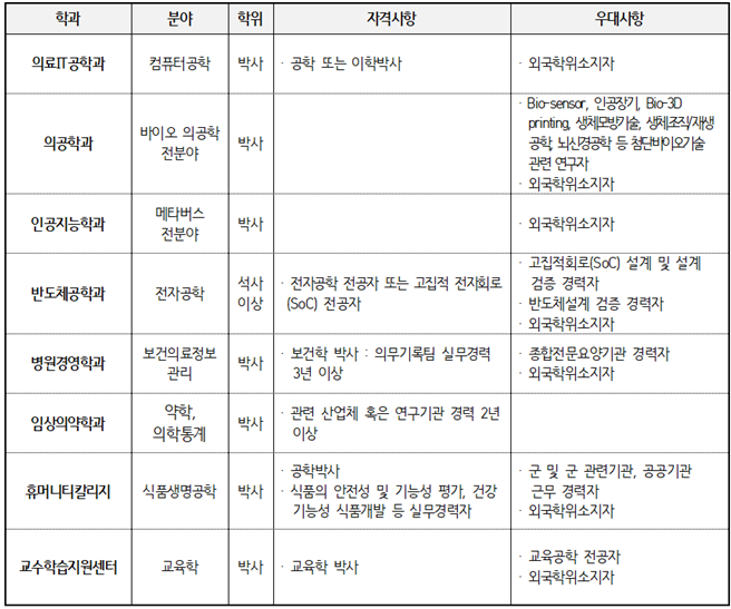 1. 초빙분야 및 자격, 우대사항 : 지원 시 첨부한 공고문 및 서식 파일을 확인해 주시기 바랍니다.