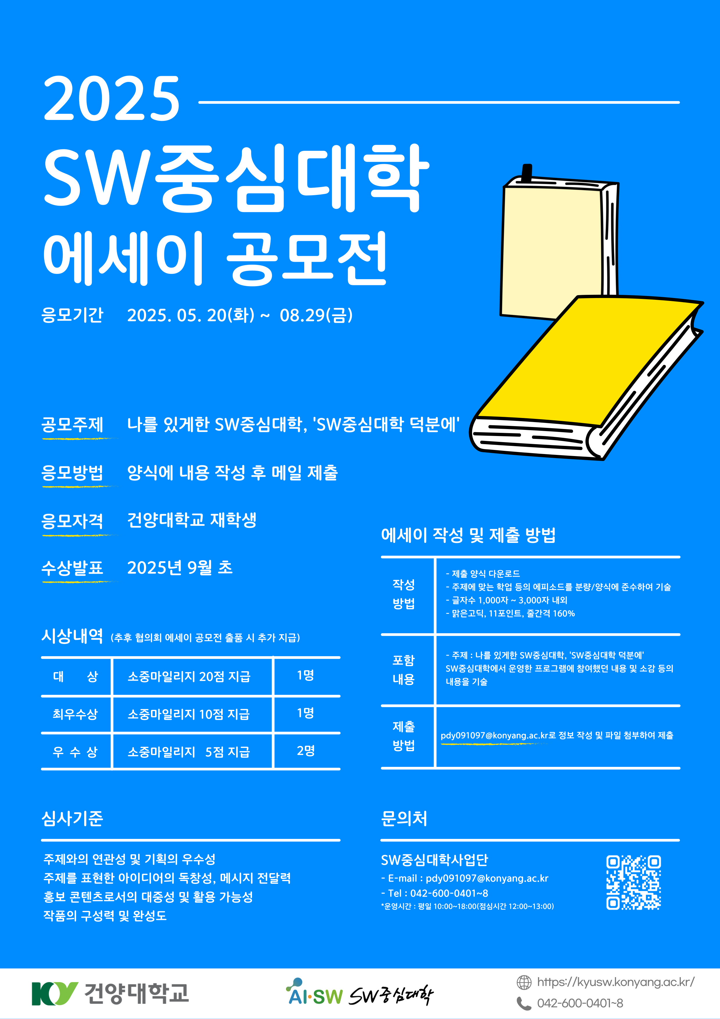| 제목 | 2025 SW중심대학 에세이 공모전 안내 | ||||