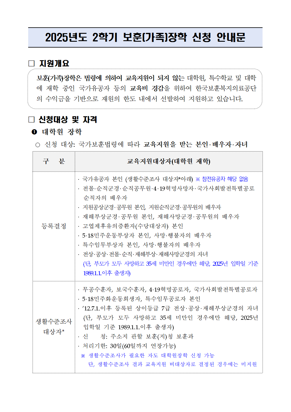 ㅣ붙임ㅣ2025년_2학기_보훈(가족)장학_신청_안내문(신청서식_포함).hwpx