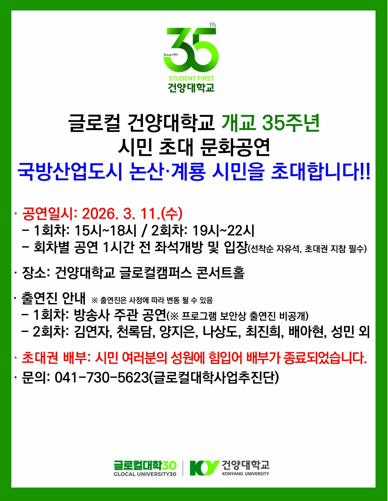 글로컬 건양대학교 개교 35주년 시민 초대 문화공연 국방산업도시 논산·계룡 시민을 초대합니다!!