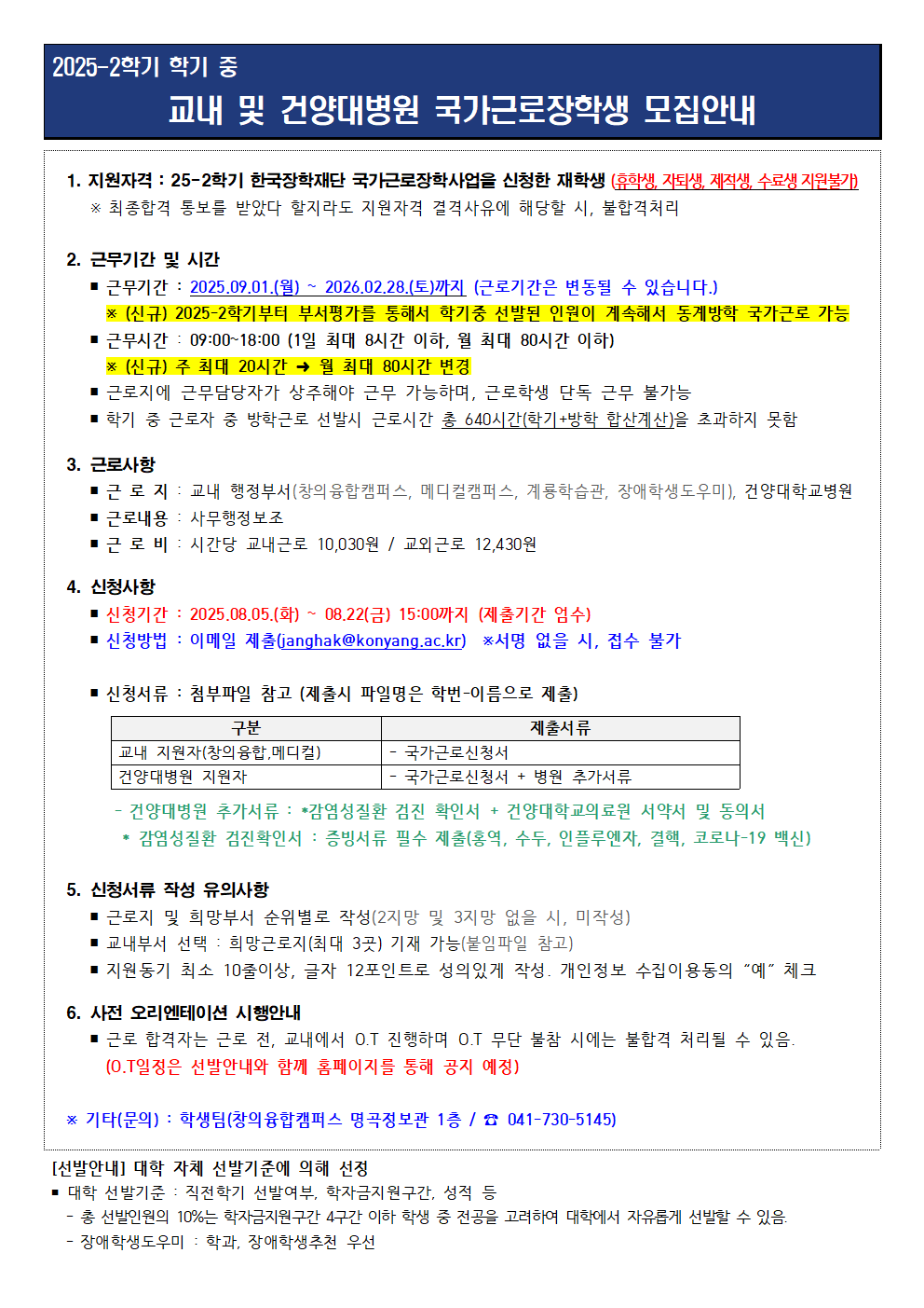 | 제목 | 2025-2학기 학기중 국가근로장학생 모집안내 | ||||