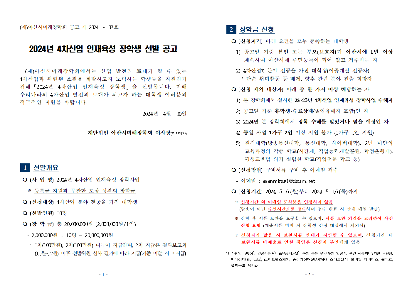 | 제목 | 2024년 4차산업 인재육성 장학생 선발 공고 | ||||