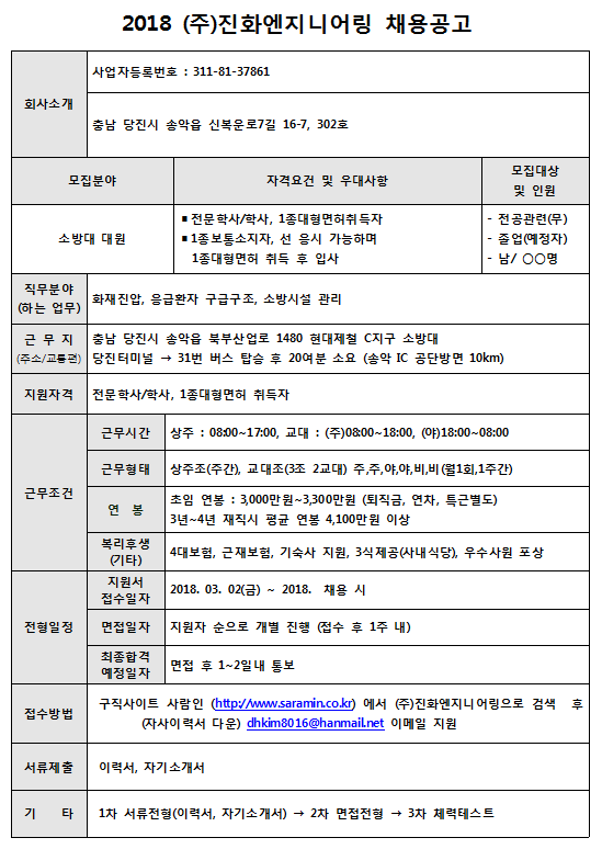 | 제목 | (주)진화엔지니어링 채용공고 | ||||