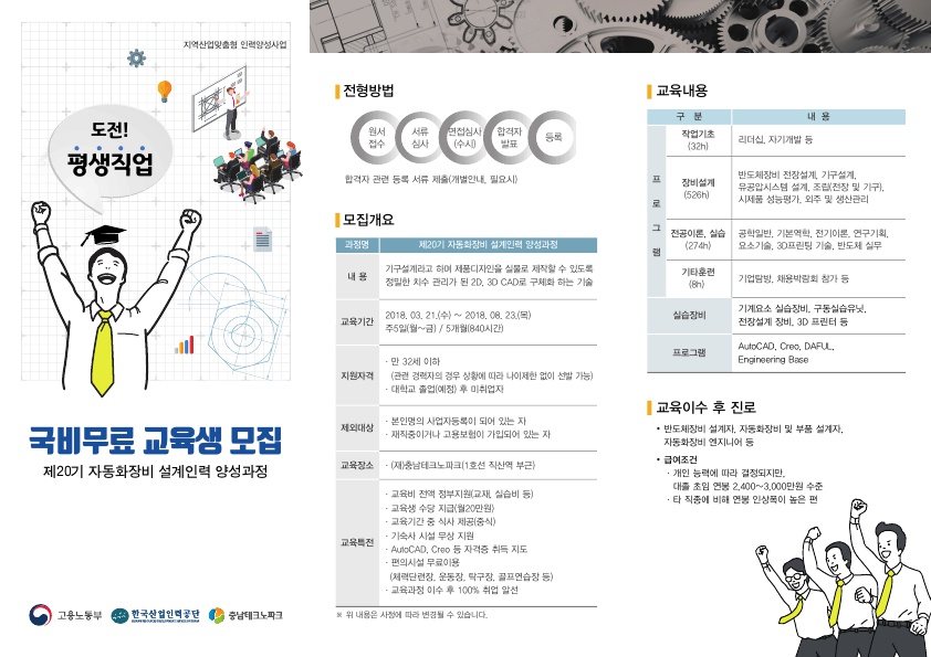 충남테크노파크에서는 제 20기 자동화장비 설계인력 양성과정 참가자를 모집중입니다.