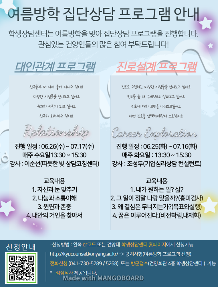 | 제목 | 학생상담센터 하계방학 프로그램 안내 | ||||