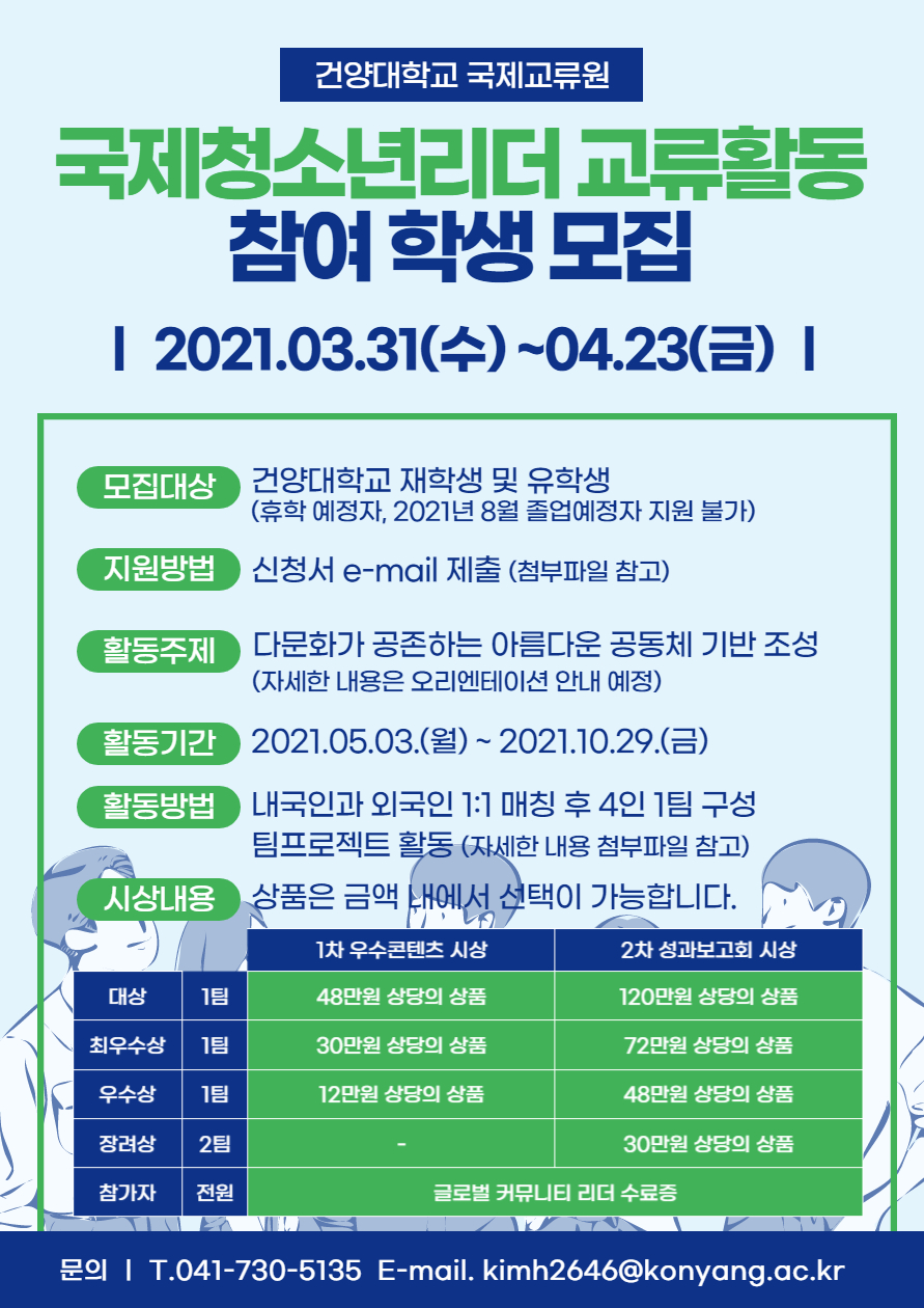 | 제목 | 2021년 국제청소년리더 교류지원사업 참여 학생 모집 공고 | ||||