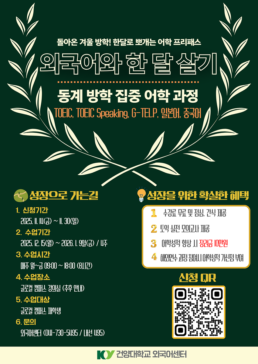 | 작성자 | 외국어센터 | 등록일 | 2025-11-18 | 조회 | 1951 |