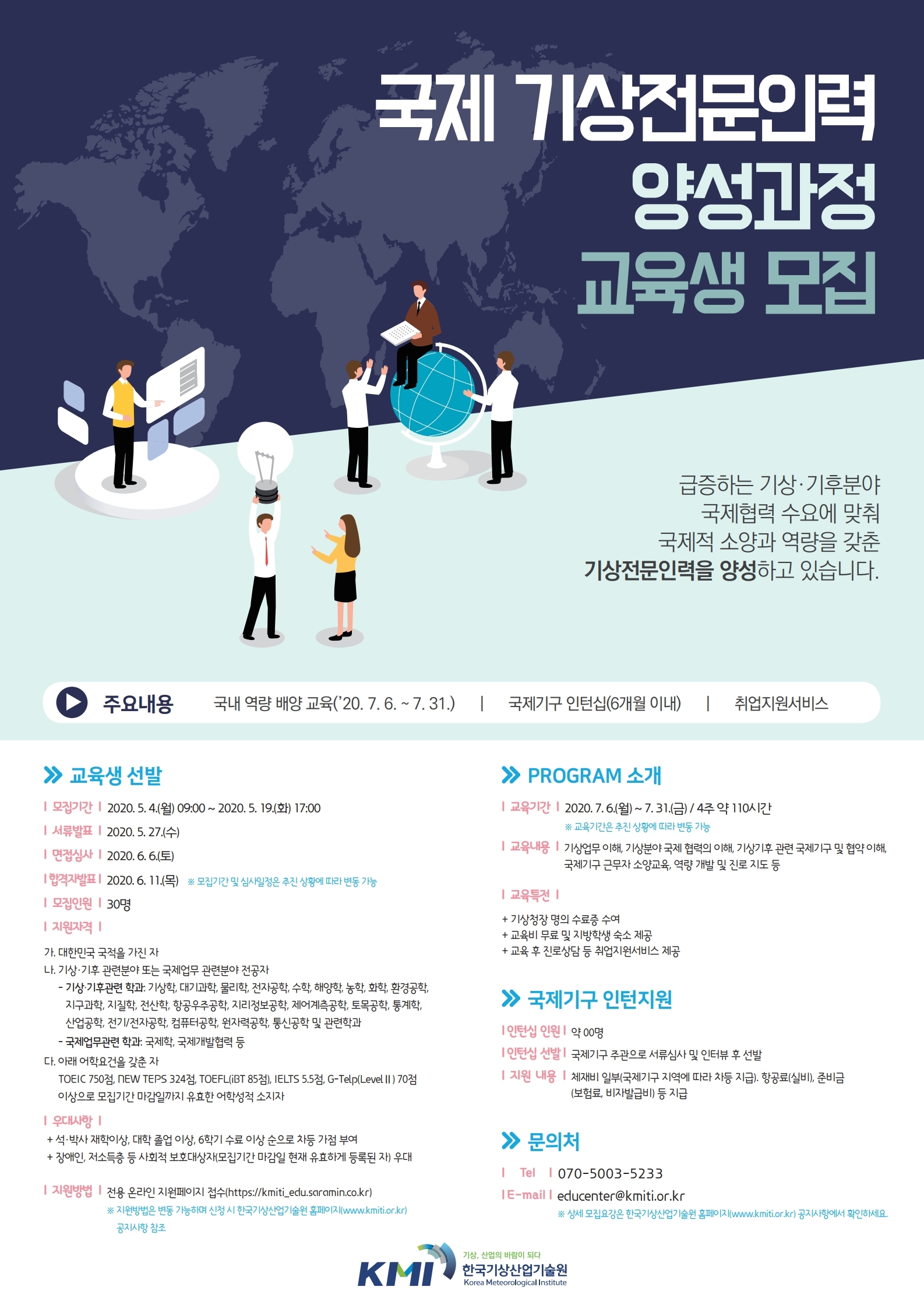 | 제목 | 2020년 국제 기상전문인력 양성과정 교육생 모집 안내 | ||||