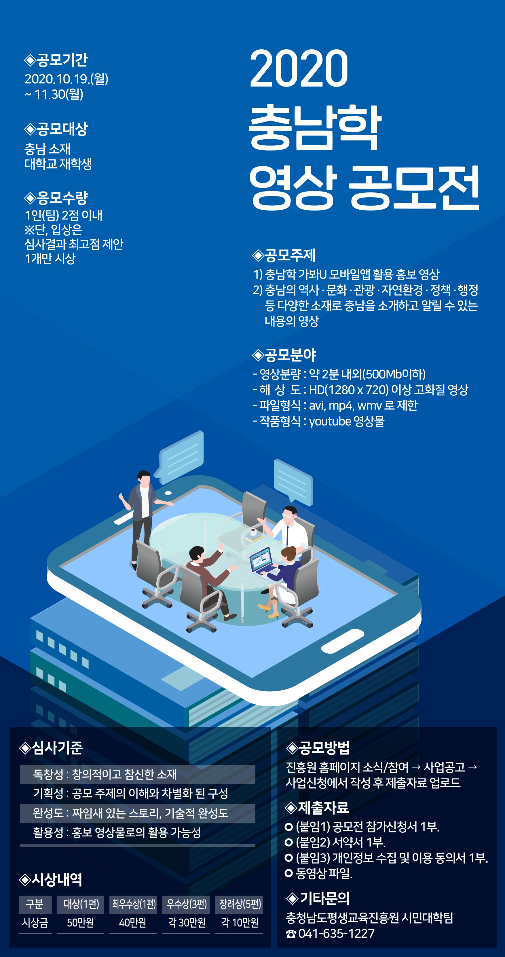 | 제목 | 충청남도평생교육진흥원 2020 충남학 홍보 영상 공모전 안내 | ||||
