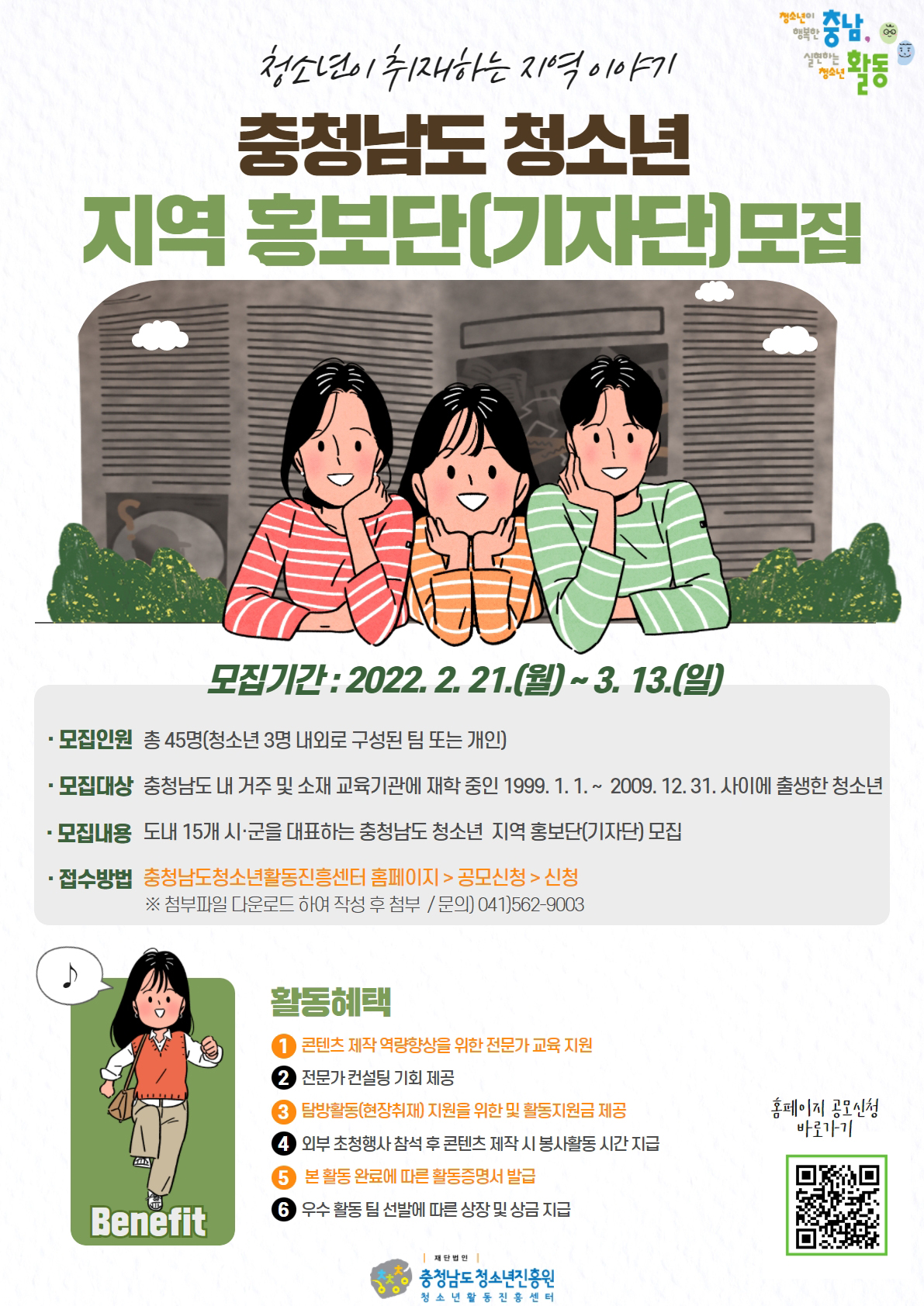 | 제목 | 2022 충청남도 청소년 지역 홍보단(기자단) 모집 안내 | ||||