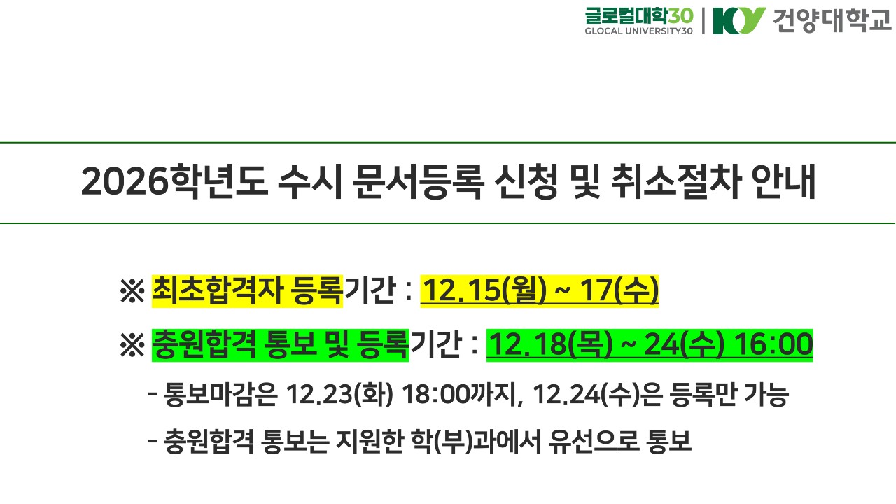 | 제목 | 2026학년도 수시전형 문서등록 절차 안내 | ||||