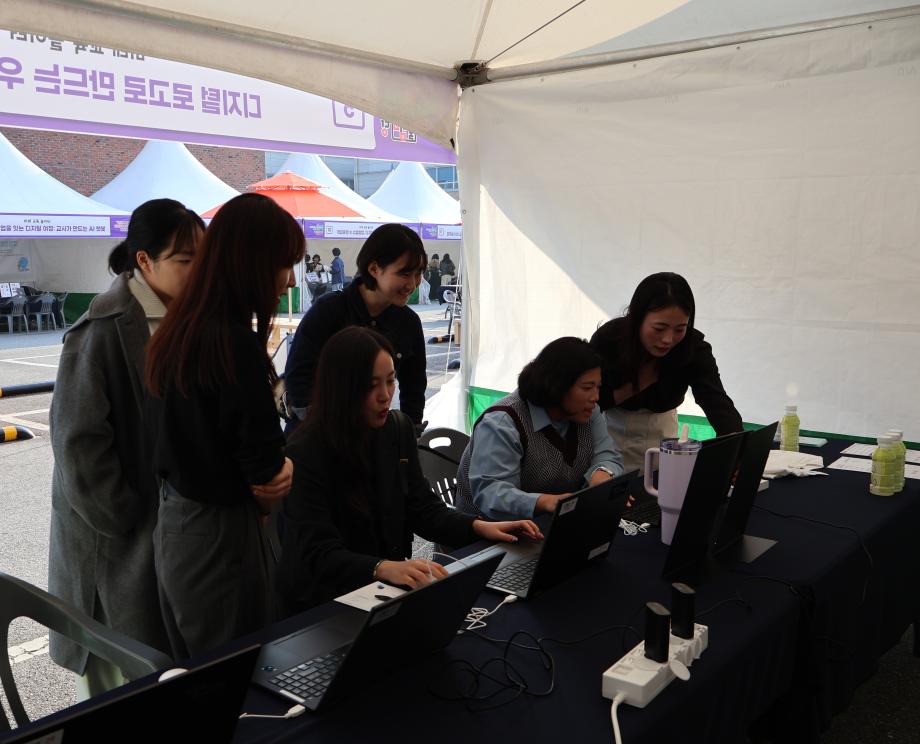 건양대 SW중심대학사업단 소속 ‘미래AI교육연구회’는 행사 3일차 체험마당의 핵심 프로그램인 ‘미래교육 놀이터’ 부스를 직접 기획하고 운영했다. ‘미래AI교육연구회’는 충청권 초·중등 교사들을 중심으로 AI 기반 미래 교육 환경 이해도를 높이고, 학교 현장에 적용 가능한 교육 모델 개발을 위해 조직된 연구 모임이었다.