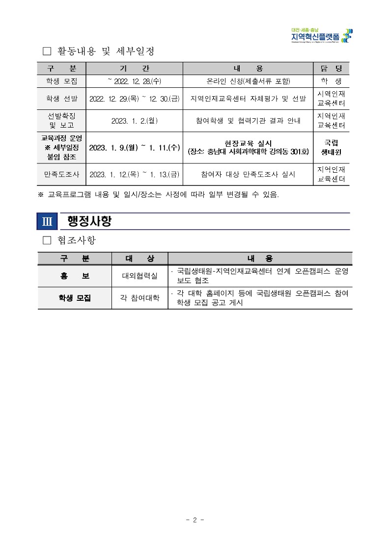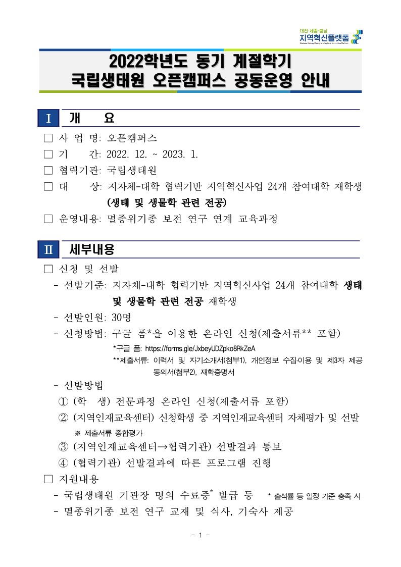 붙임 1. 2022학년도 동기 계절학기 국립생태원 오픈캠퍼스 공동운영 안내.pdf