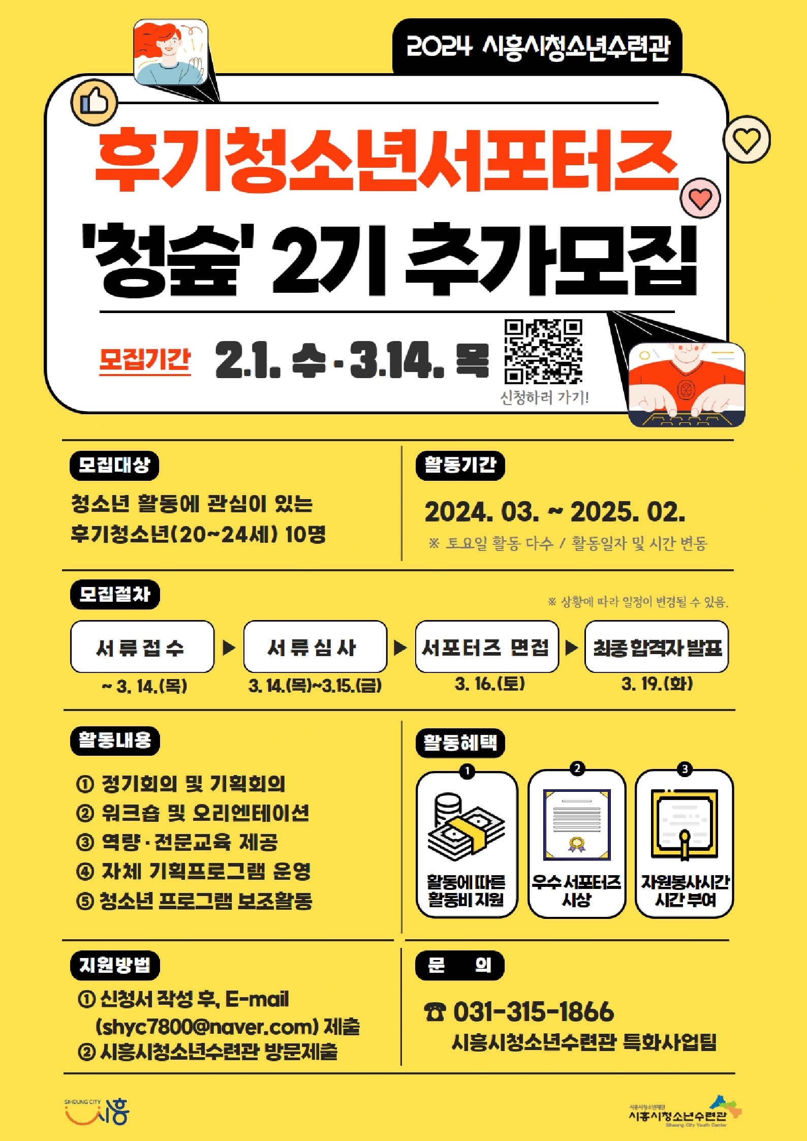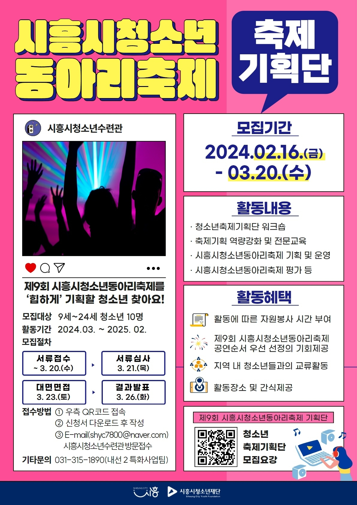 | 제목 | 024년 시흥시청소년수련관 자치참여기구 모집 홍보 | ||||
