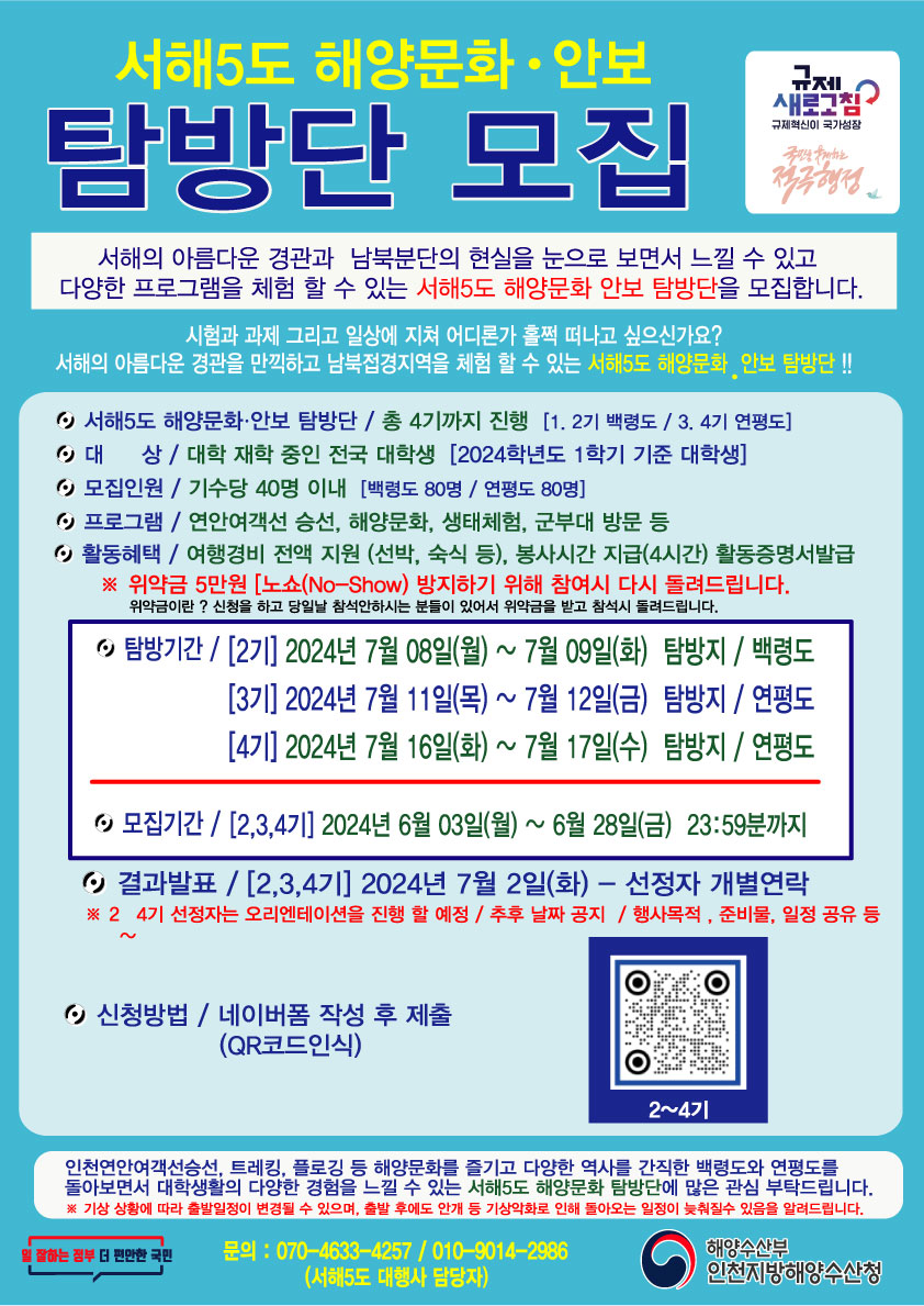 | 제목 | 서해5도 해양문화 탐방프로그램(2~4기) 안내 및 홍보 | ||||