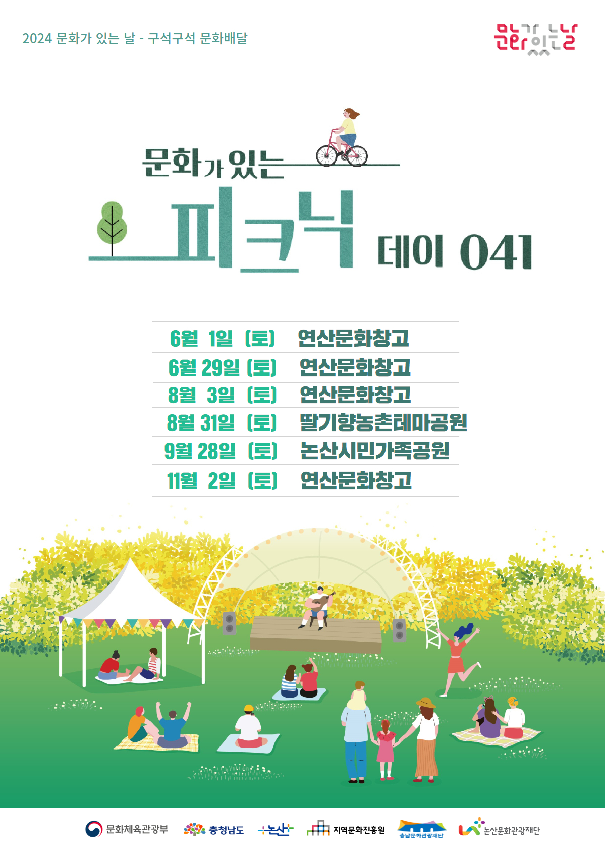 | 제목 | 2024 문화가 있는 날 <문화가 있는 피크닉 데이 041> 행사보조 자원봉사자 모집 | ||||