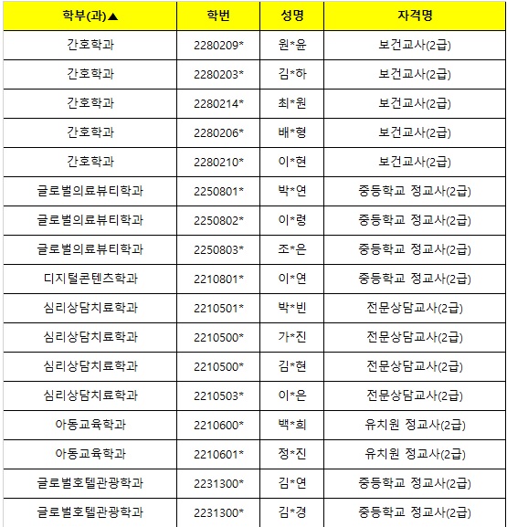 2023학년도 교직과정 이수예정자 선발 결과를 다음과 같이 안내합니다.