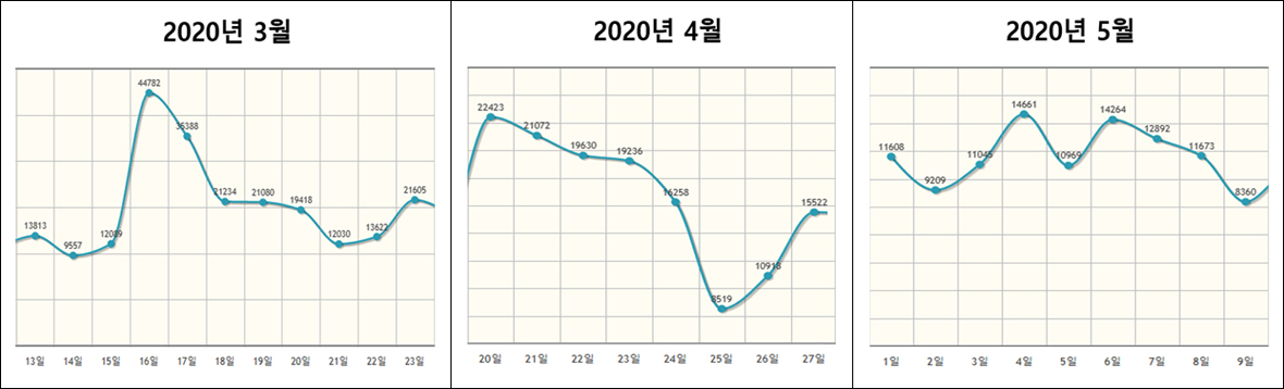 ❍ 시스템 이용 현황(2020.03월~5월 첫째주)