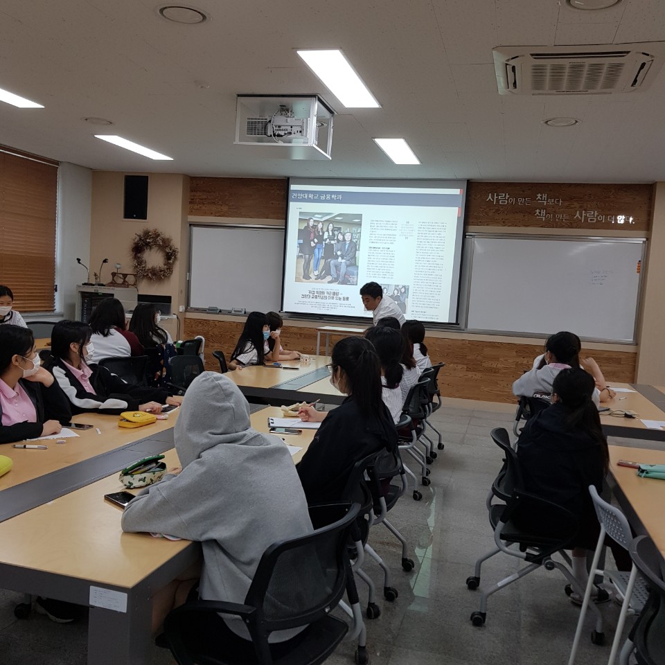 태안여자고등학교에서 진행한 모의투자대회 설명회 진행 사진입니다.