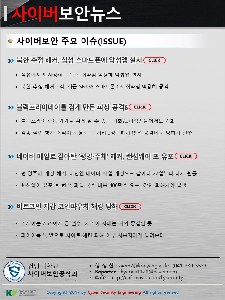 『 사이버보안공학과 보안매거진 2017-10호 』글의 상세내용을 확인하는 표로 제목, 부서명, 등록일, 조회, 첨부, 내용으로 나뉘어 설명합니다.
