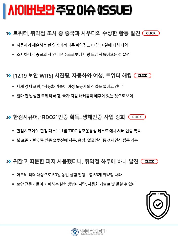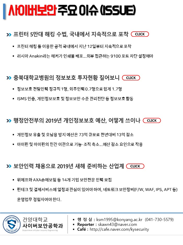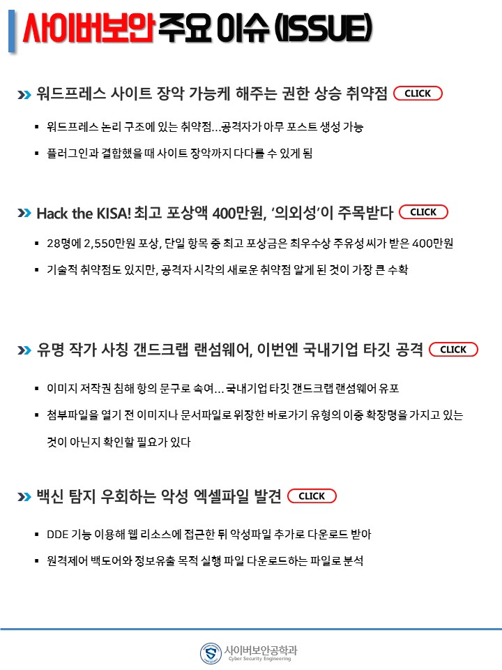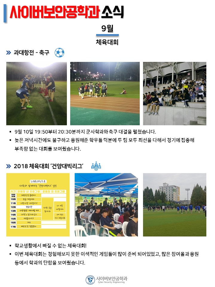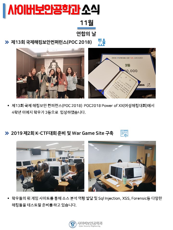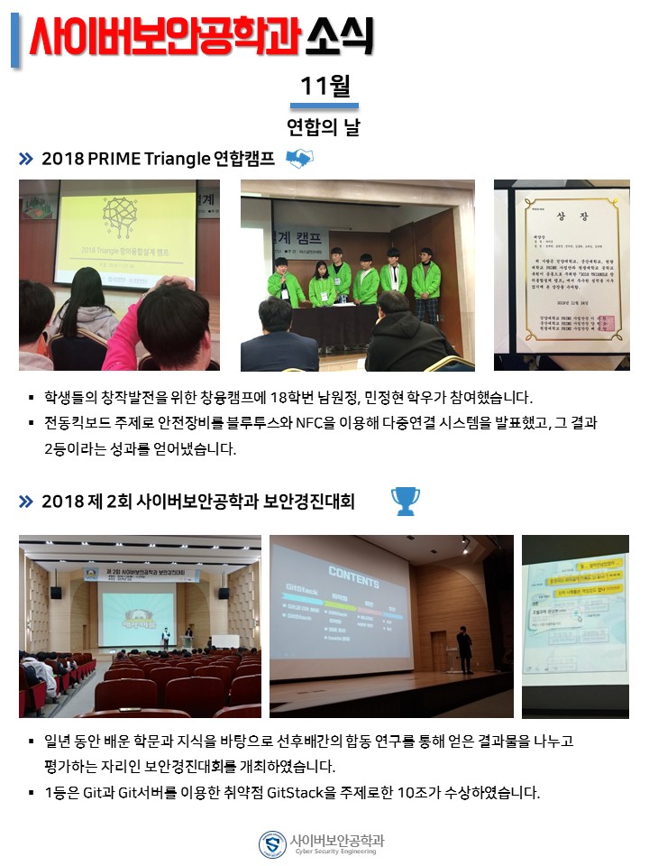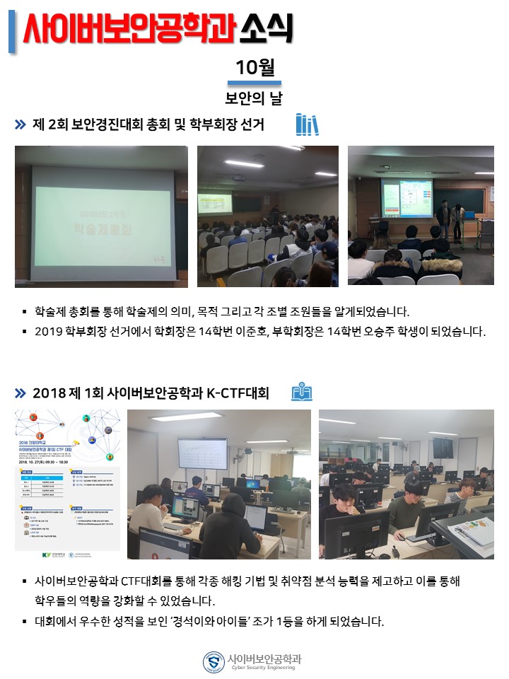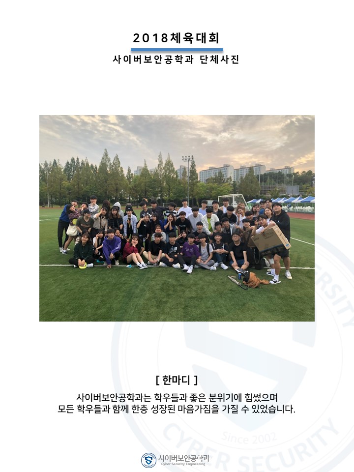 『 사이버보안공학과 보안매거진 2018-6호 』글의 상세내용을 확인하는 표로 제목, 부서명, 등록일, 조회, 첨부, 내용으로 나뉘어 설명합니다.