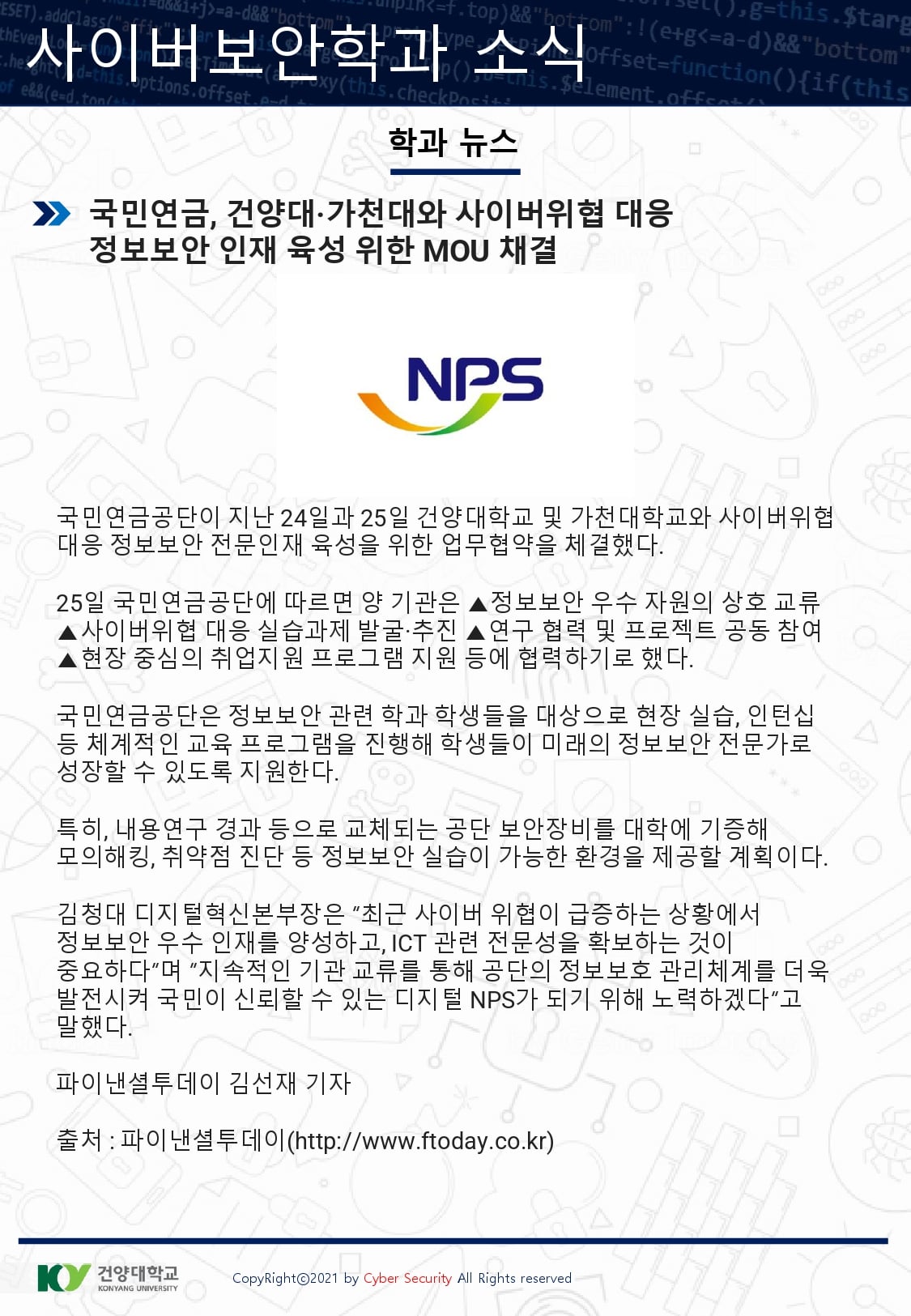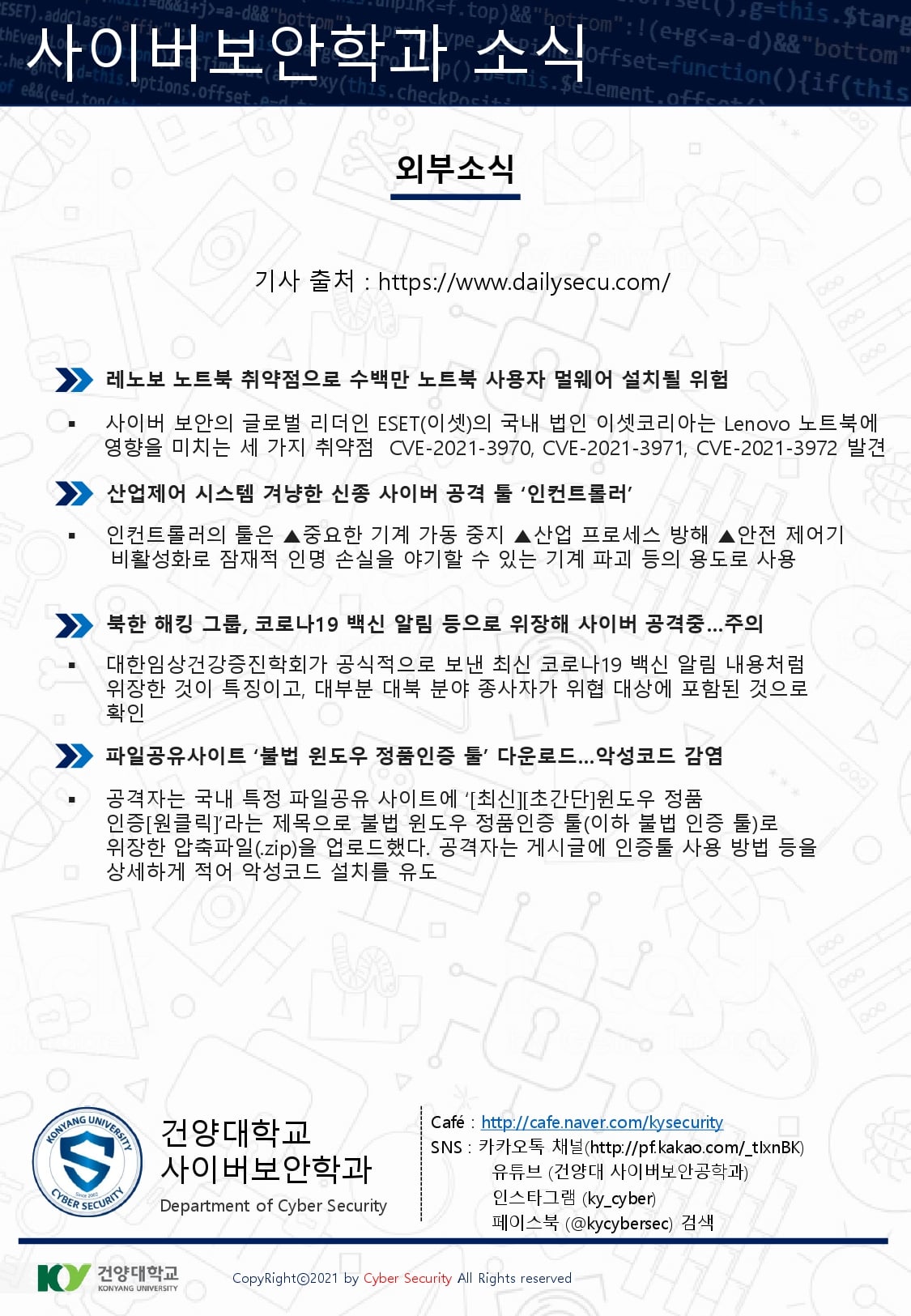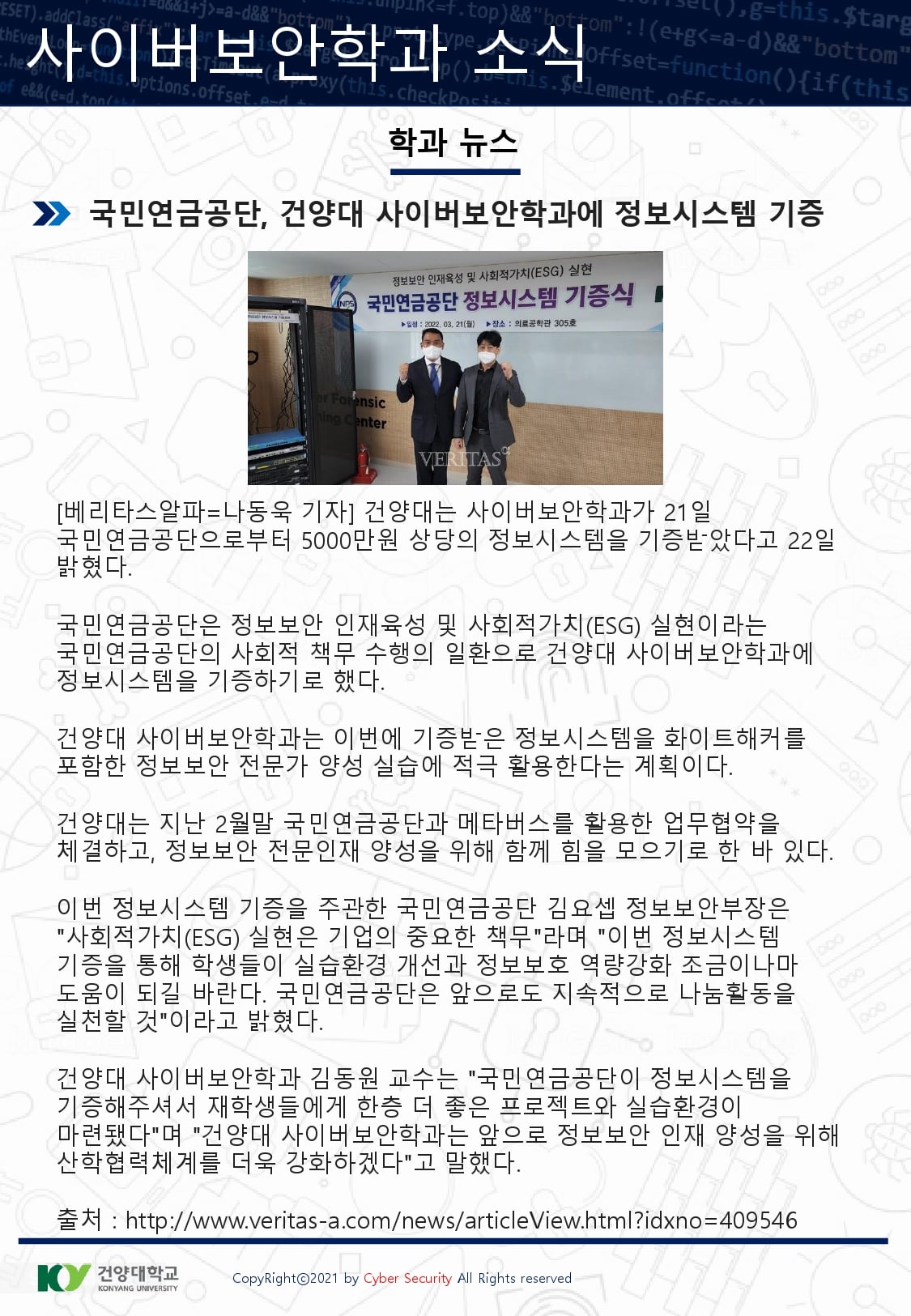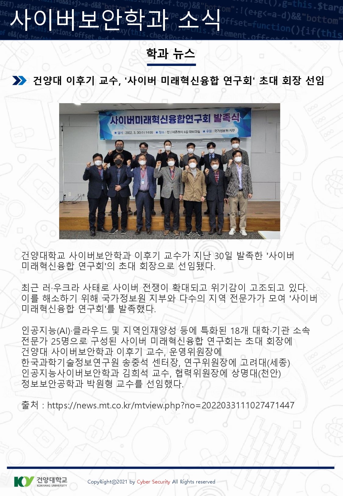 『 사이버보안학과 보안매거진 2022-1호 』글의 상세내용을 확인하는 표로 제목, 부서명, 등록일, 조회, 첨부, 내용으로 나뉘어 설명합니다.