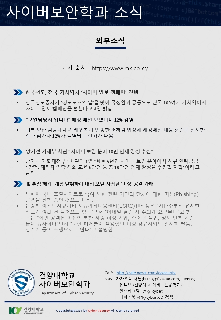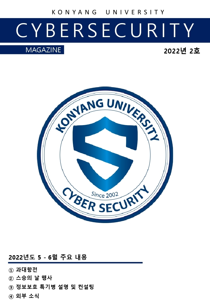 『 사이버보안학과 보안매거진 2022-2호 』글의 상세내용을 확인하는 표로 제목, 부서명, 등록일, 조회, 첨부, 내용으로 나뉘어 설명합니다.