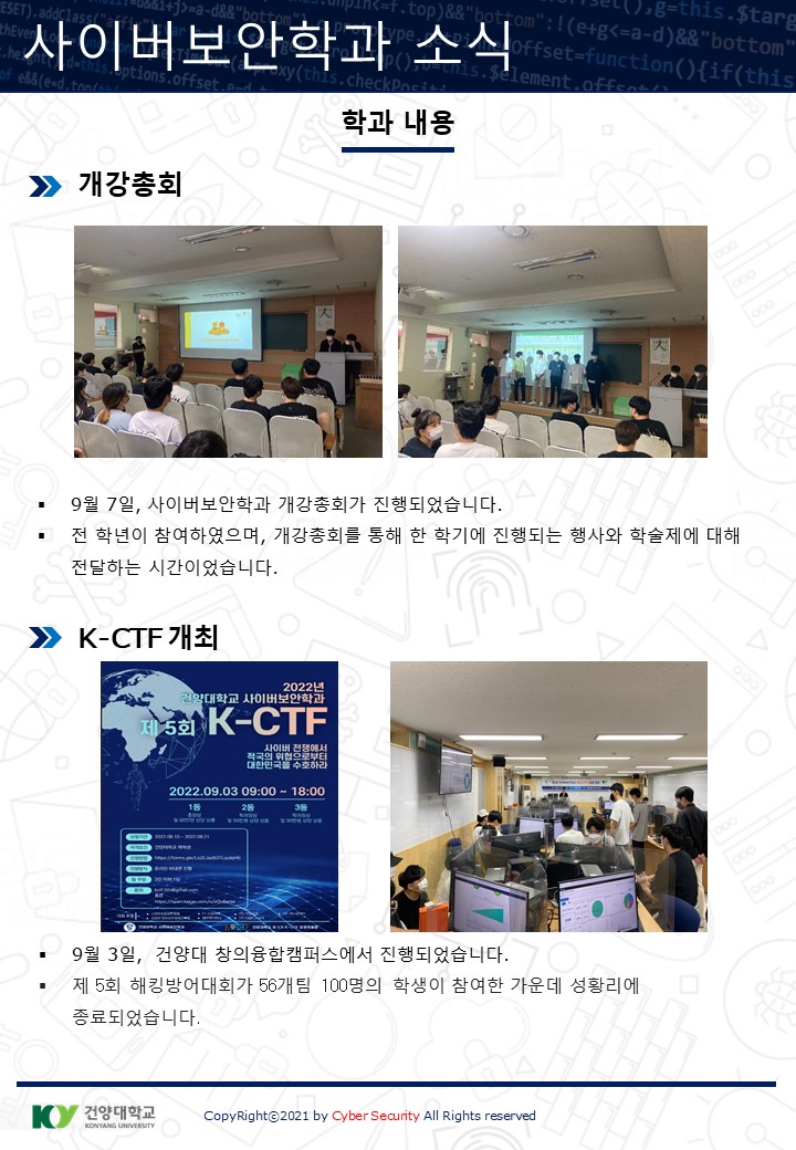 『 사이버보안학과 보안매거진 2022-4호 』글의 상세내용을 확인하는 표로 제목, 부서명, 등록일, 조회, 첨부, 내용으로 나뉘어 설명합니다.
