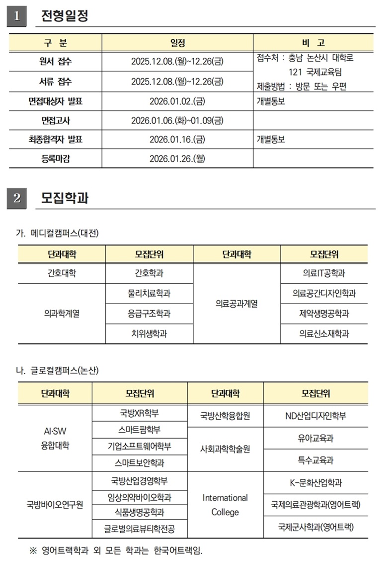 | 제목 | 2026-1학기 재외국민 및 외국인 학(부)과 신입학 모집 공고 | ||||