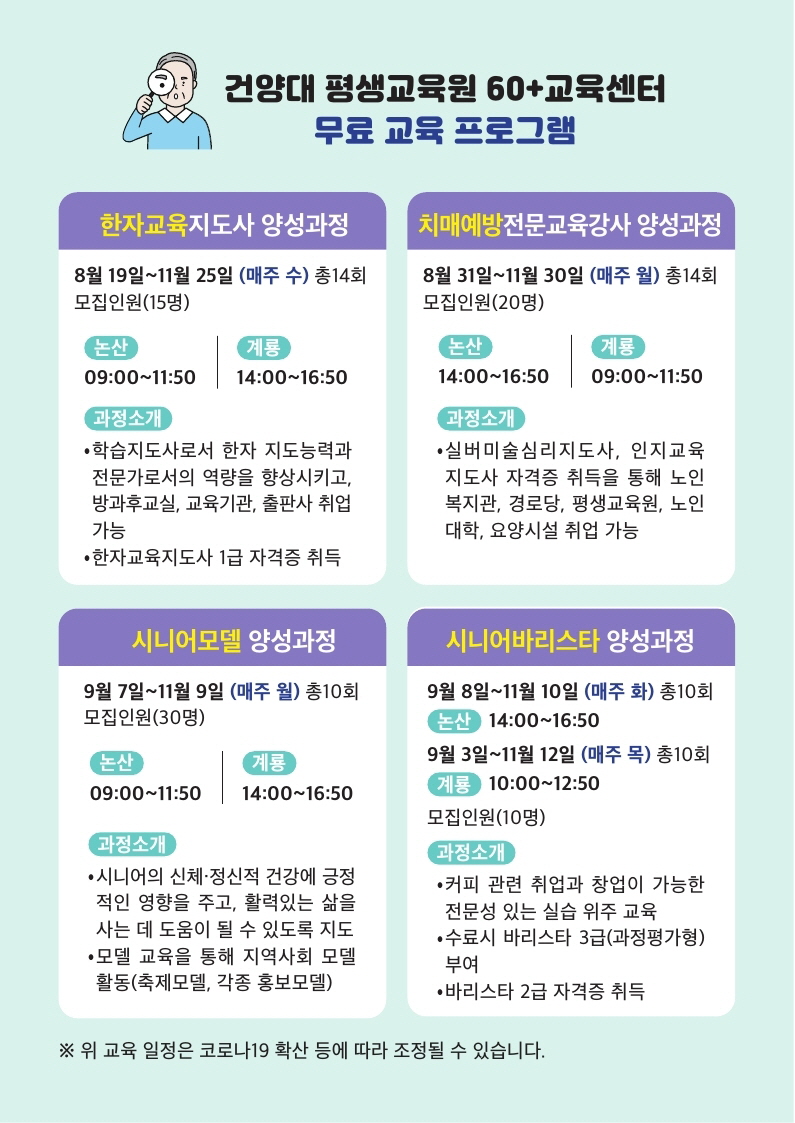 제목 [무료 교육] 60+교육센터 사업 교육과정 안내