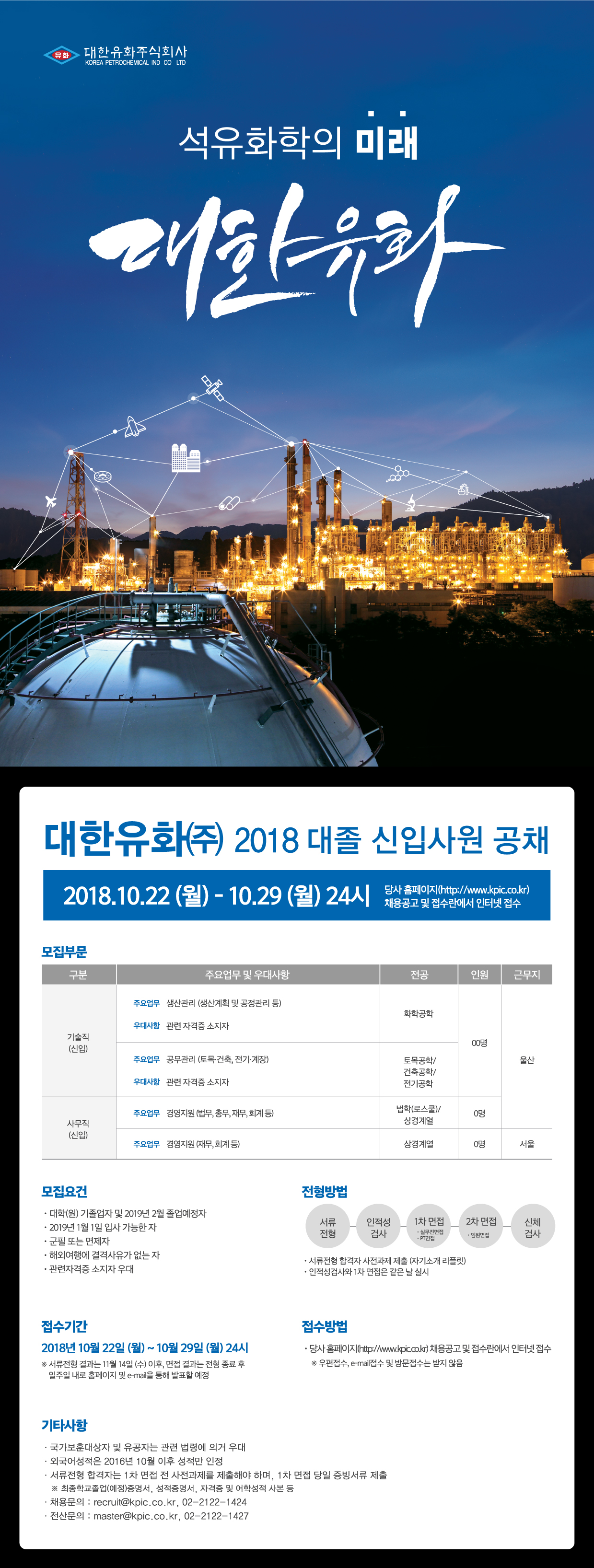 제목 (~10/29)[대한유화]2018 대졸 신입사원 공개채용 안내